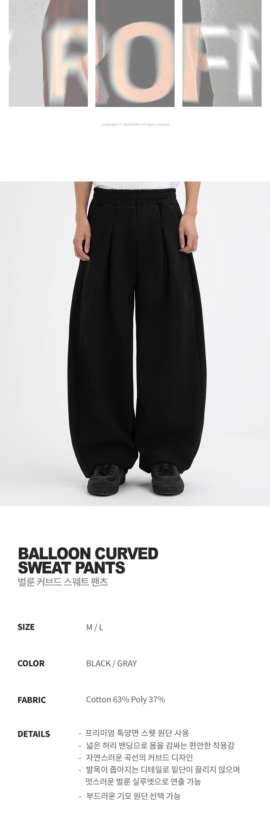 벌룬 커브드 스웨트 팬츠 블랙