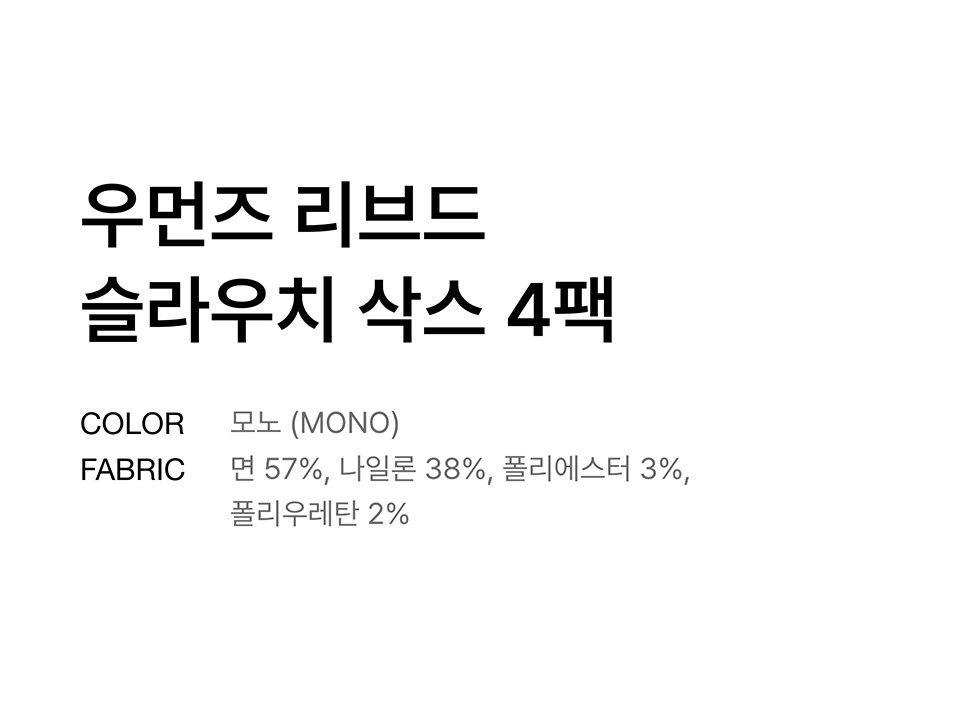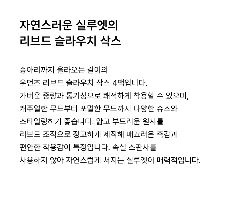 우먼즈 리브드 슬라우치 삭스 4팩 [모노]