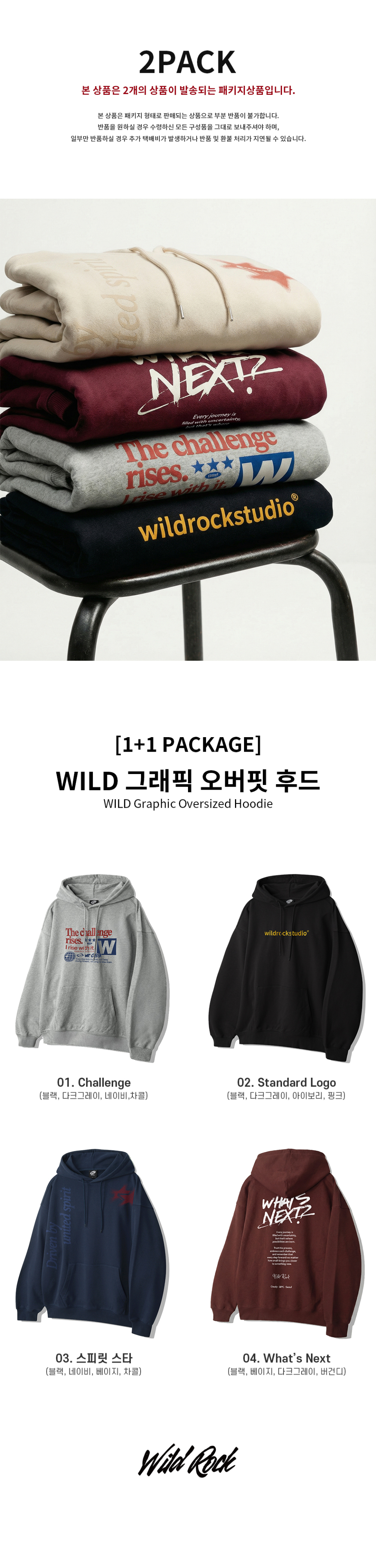 [2PACK] WILD 그래픽 오버핏 후드_4 Style