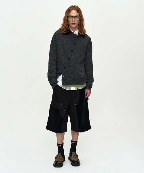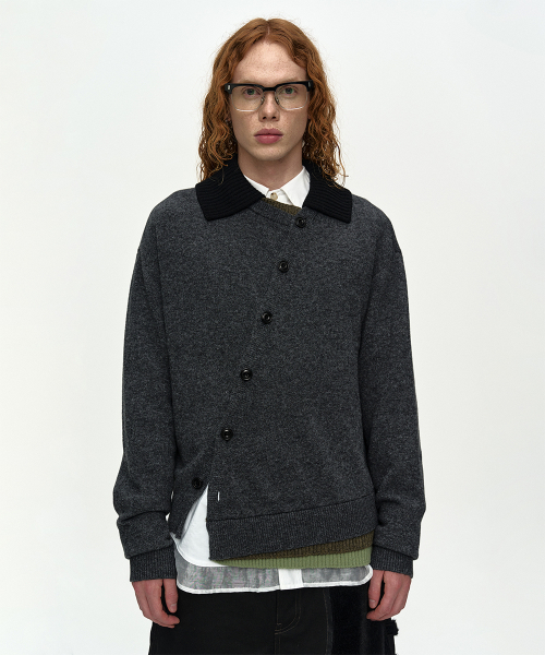 LAYERED COLLAR CARDIGAN atb1410m(CHARCOAL)