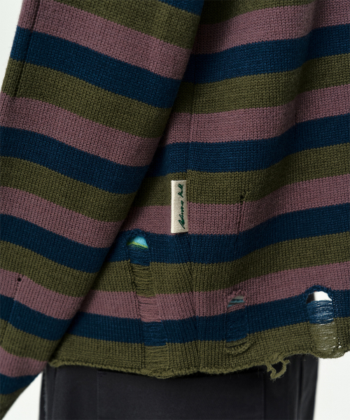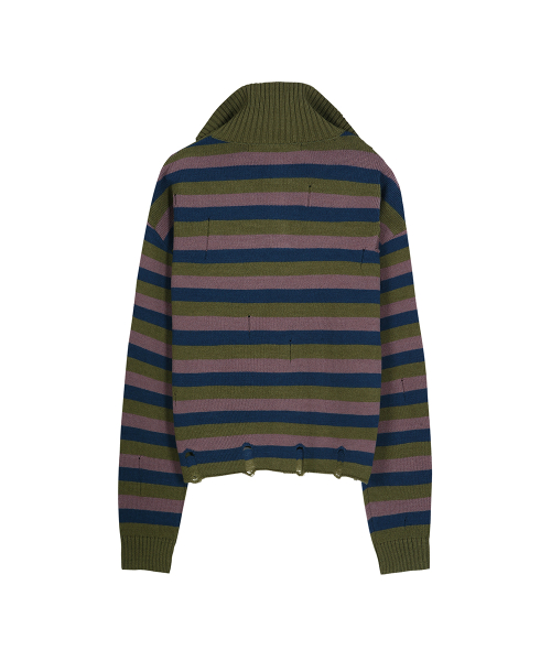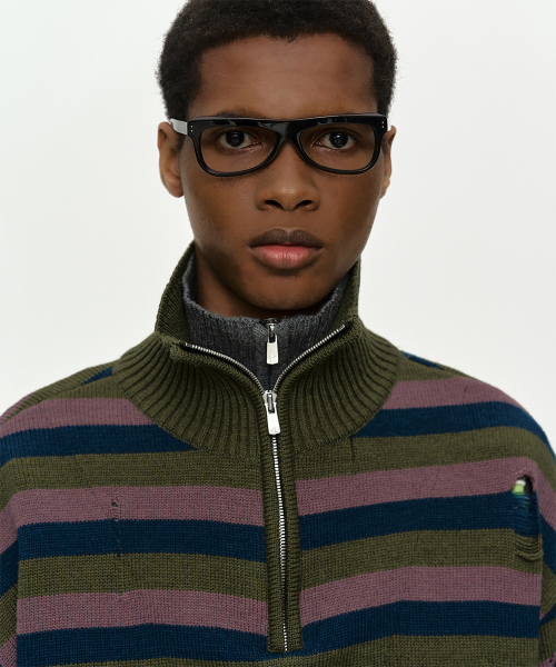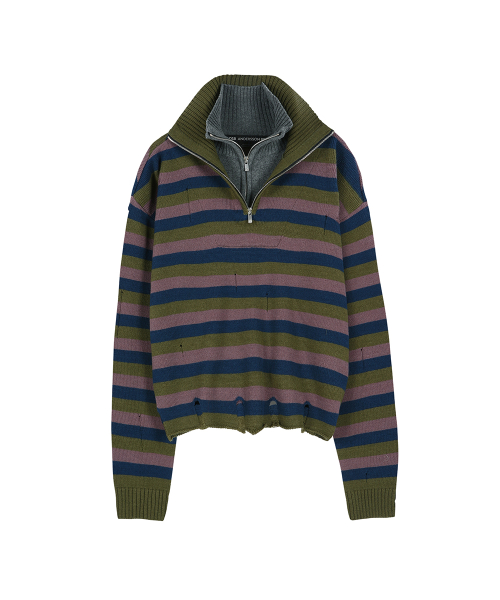 DOUBLE LAYERED STRIPE HALF ZIP-UP SWEATER atb1452m(BLUE/GREY)