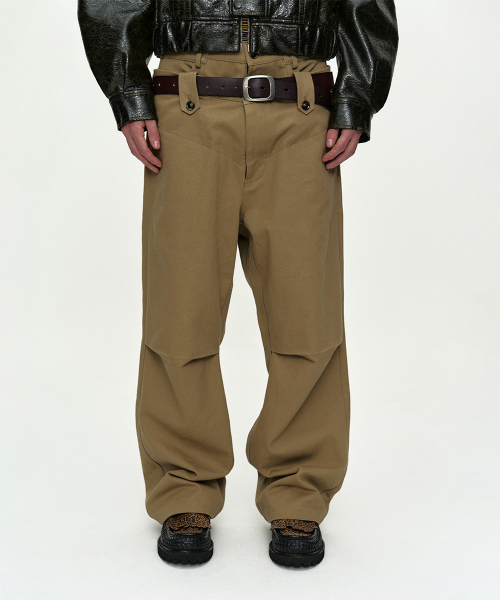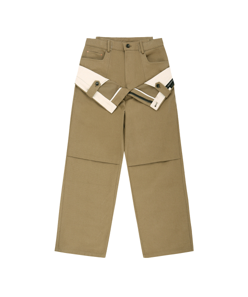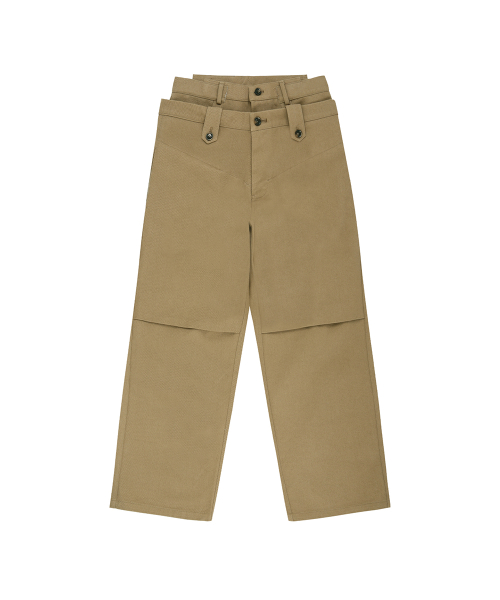 DOUBLE WAISTBAND WIDE-LEG TROUSERS apa873m(BEIGE)