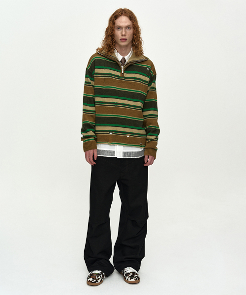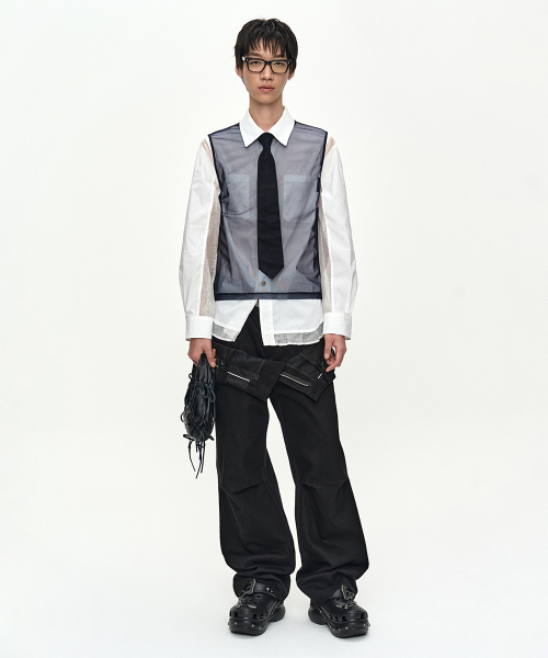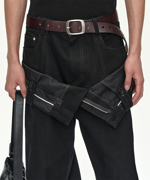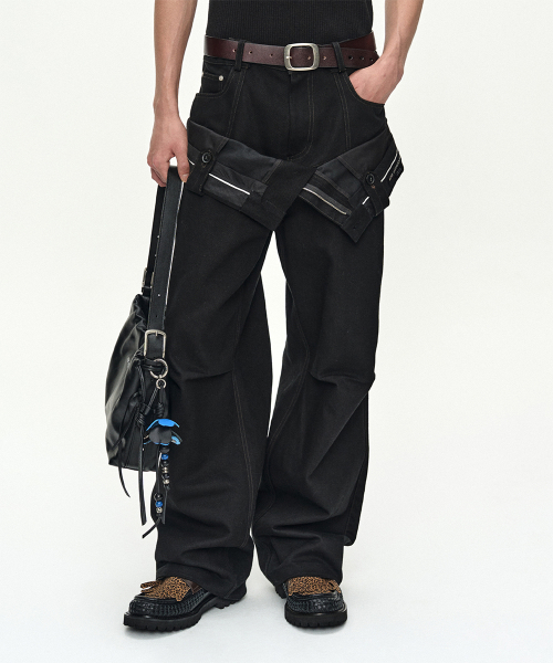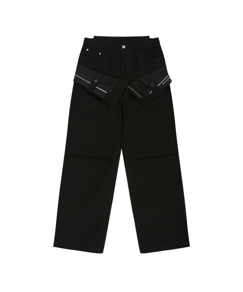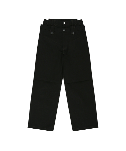 DOUBLE WAISTBAND WIDE-LEG TROUSERS apa872m(BLACK)