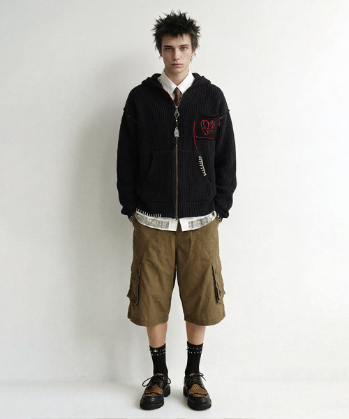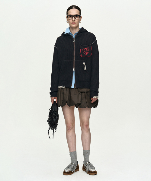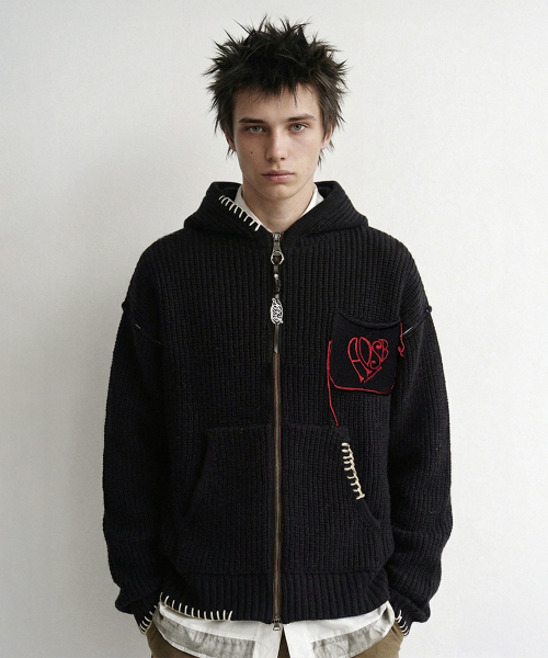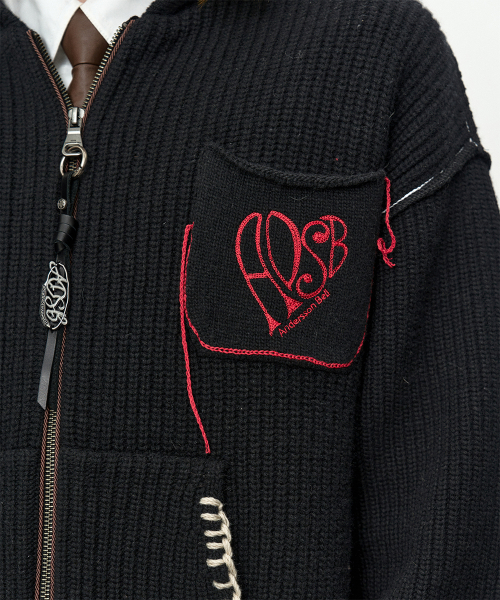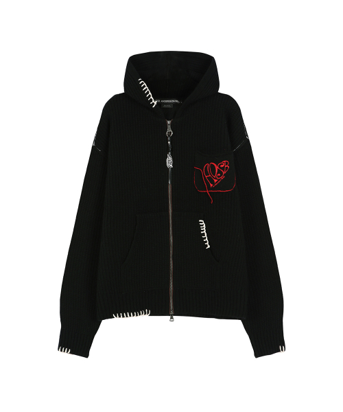 UNISEX HEART LOGO HOOD ZIP-UP SWEATER atb1420u(BLACK)