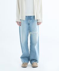 빈티지 링클 스톤워시 와이드 데님 팬츠 (LIGHT BLUE)