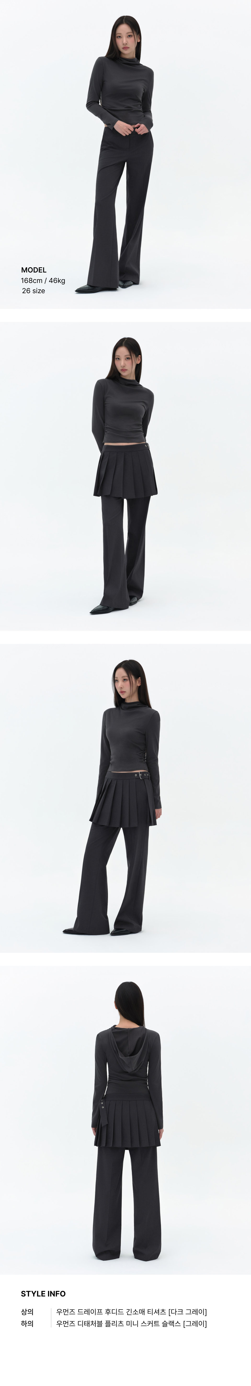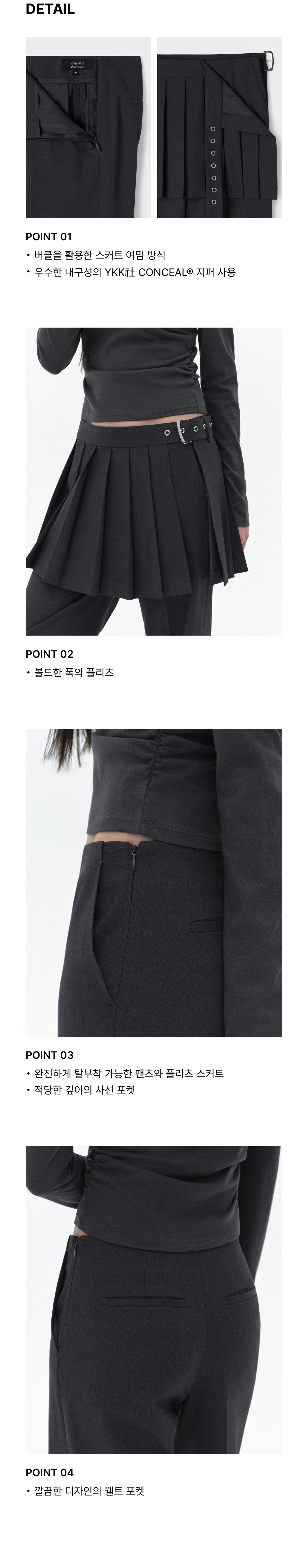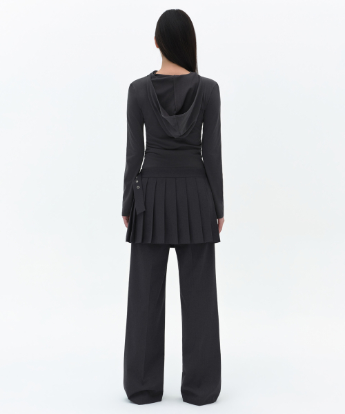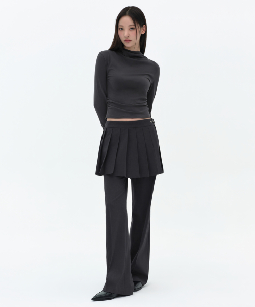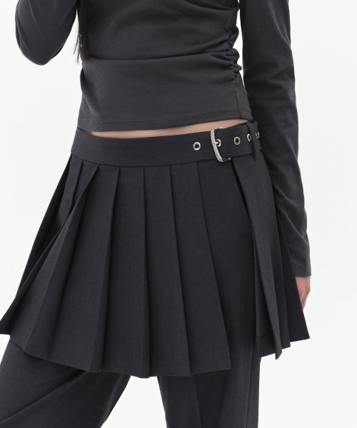 우먼즈 디태처블 플리츠 미니 스커트 슬랙스 [그레이]