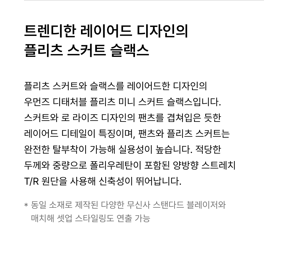 우먼즈 디태처블 플리츠 미니 스커트 슬랙스 [블랙]
