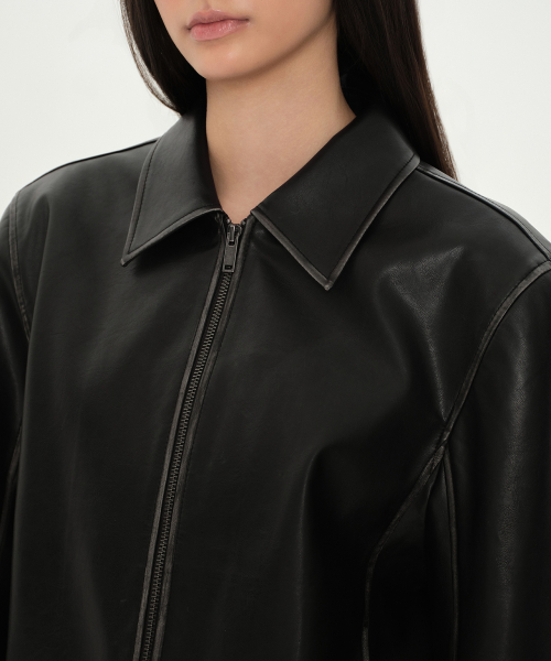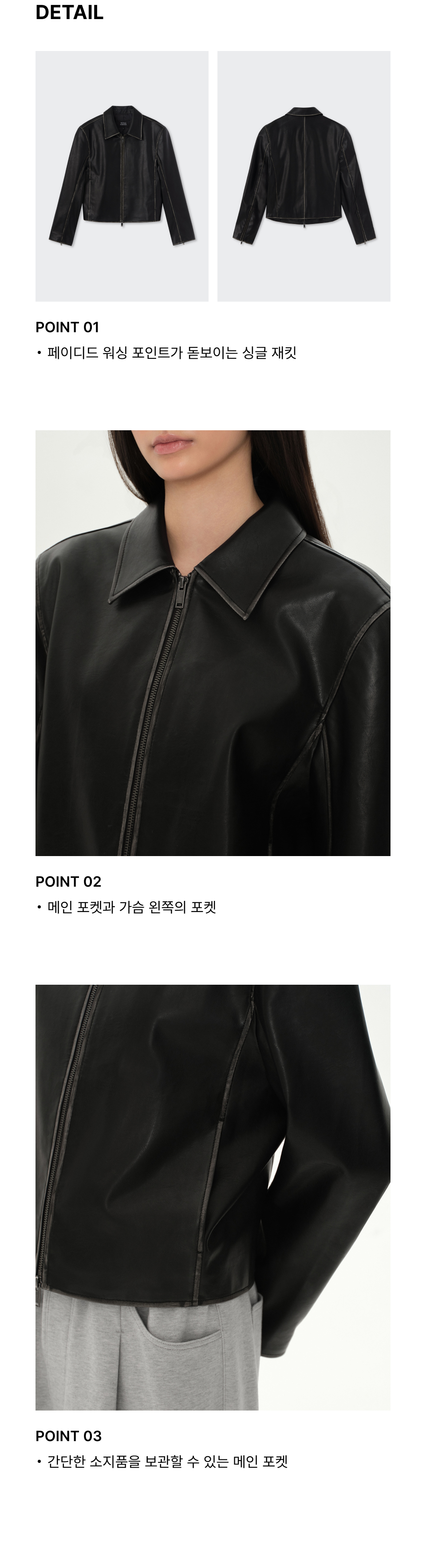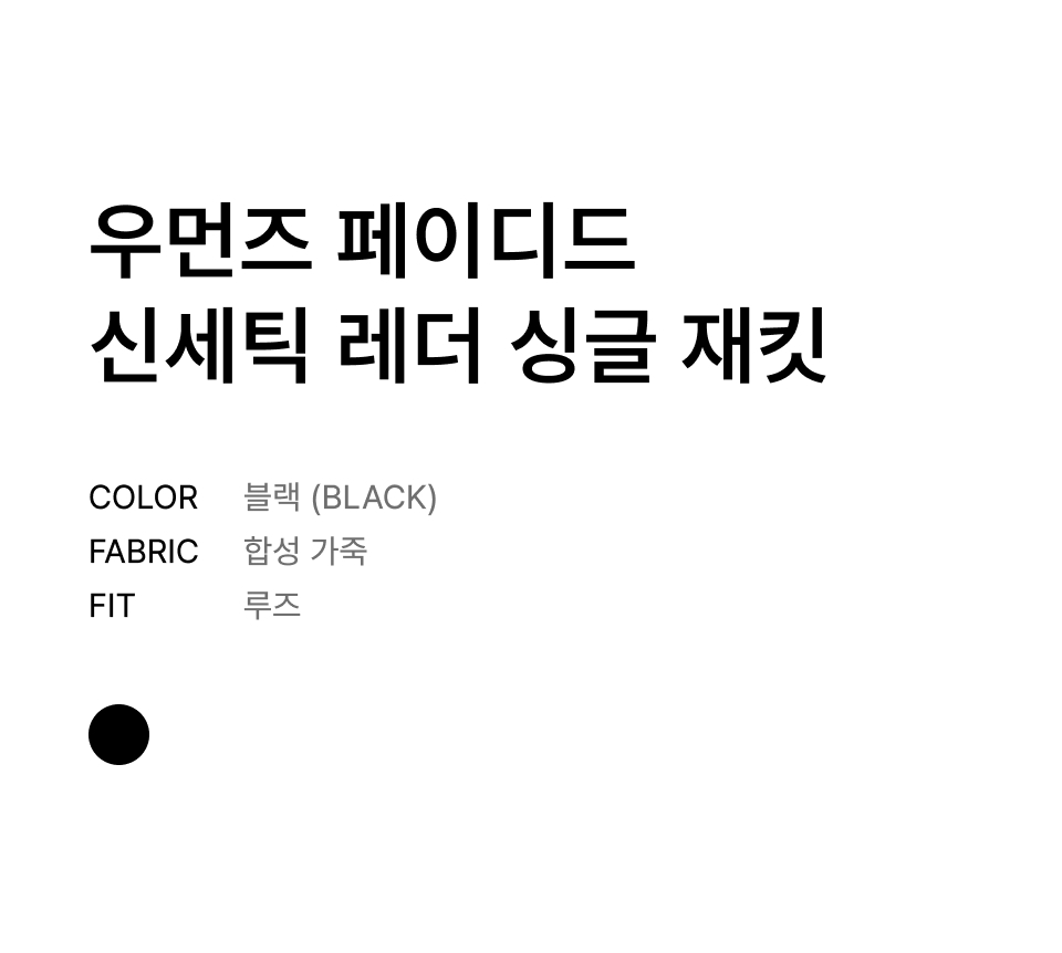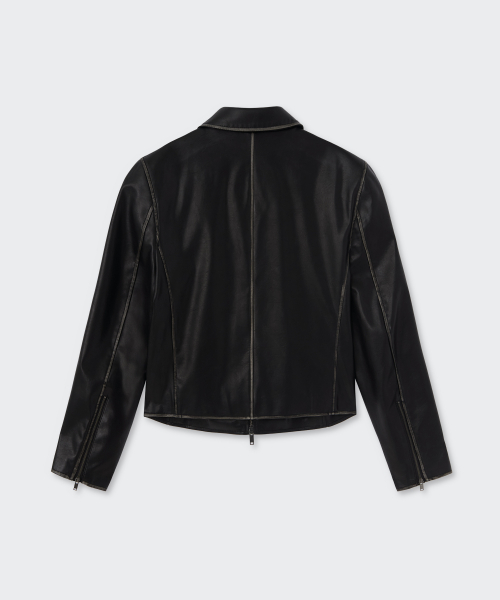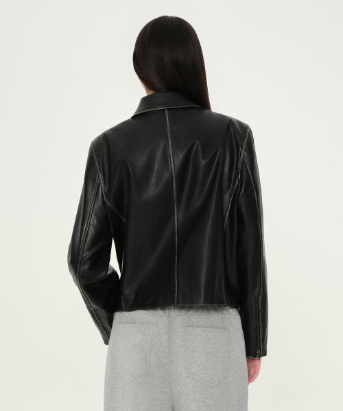 우먼즈 페이디드 신세틱 레더 싱글 재킷 [블랙]