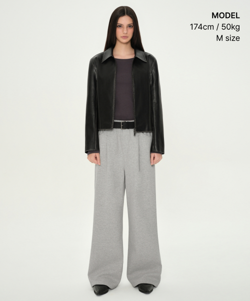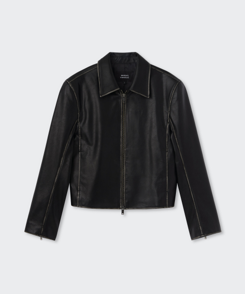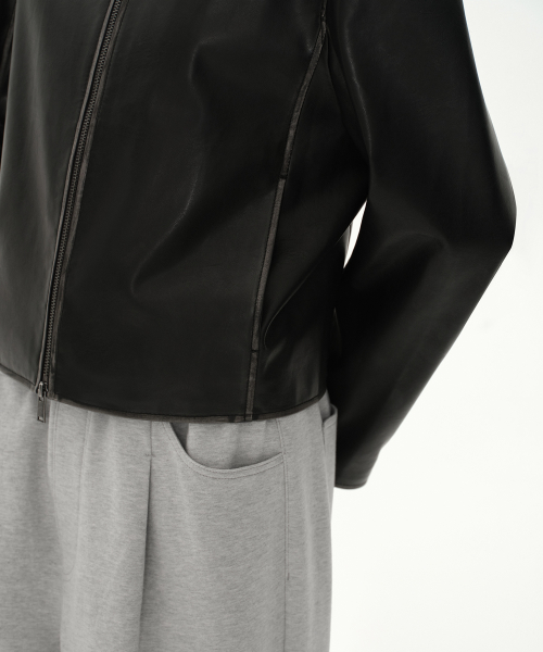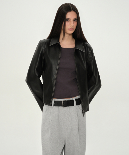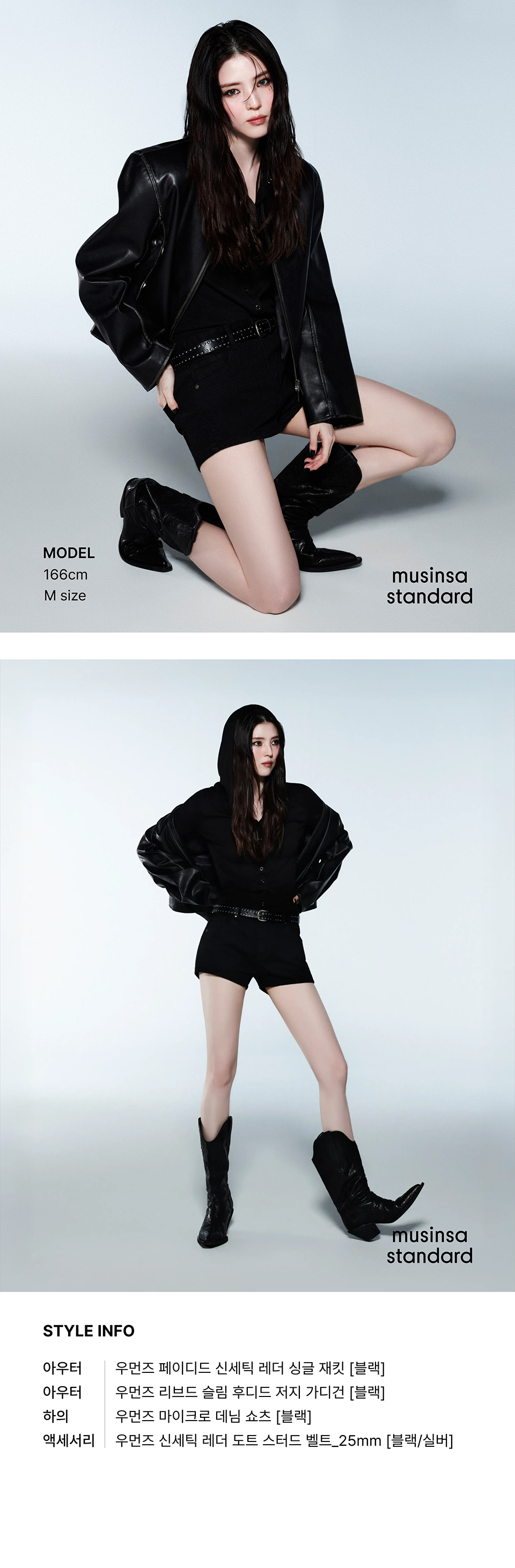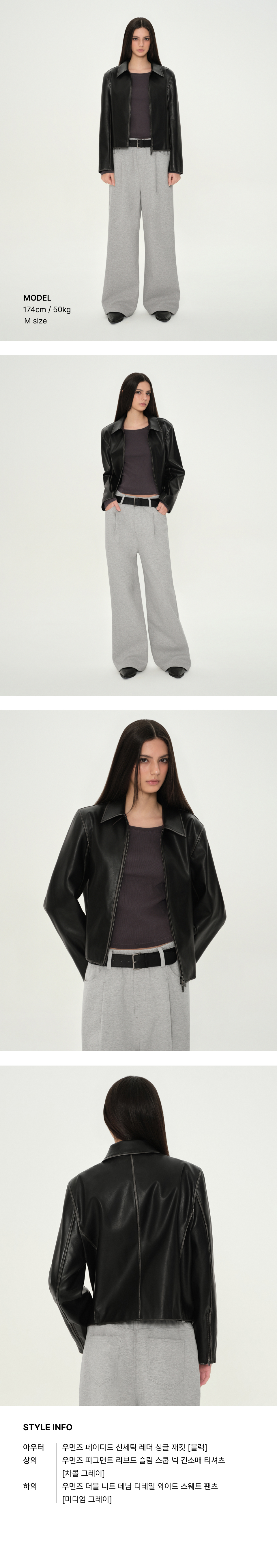 우먼즈 페이디드 신세틱 레더 싱글 재킷 [블랙]
