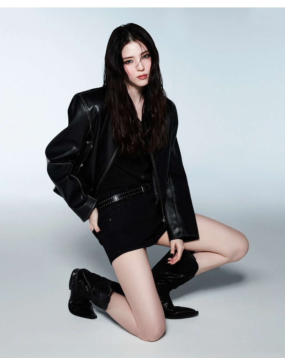 [한소희 PICK] 우먼즈 페이디드 신세틱 레더 에비에이터 재킷 [블랙]