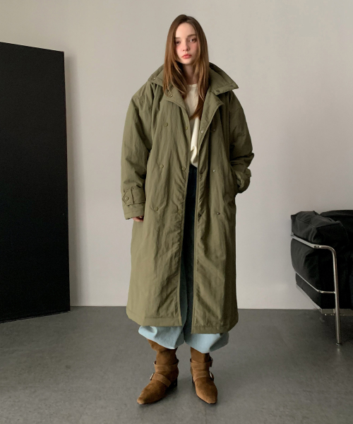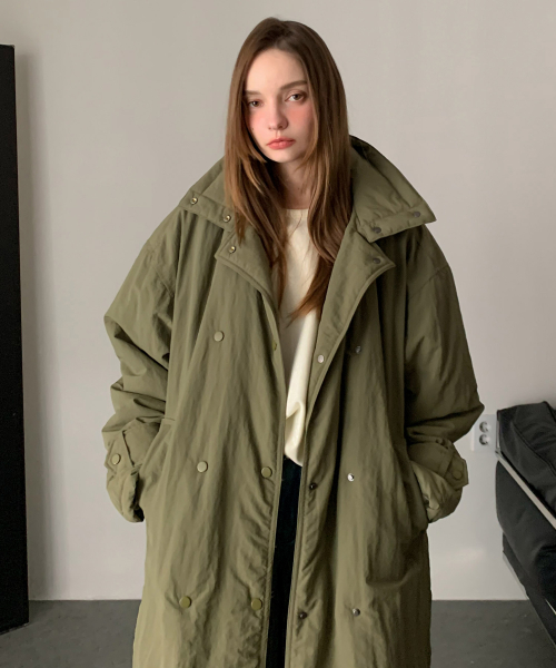 High-neck Padded Long Field Coat (2colors)