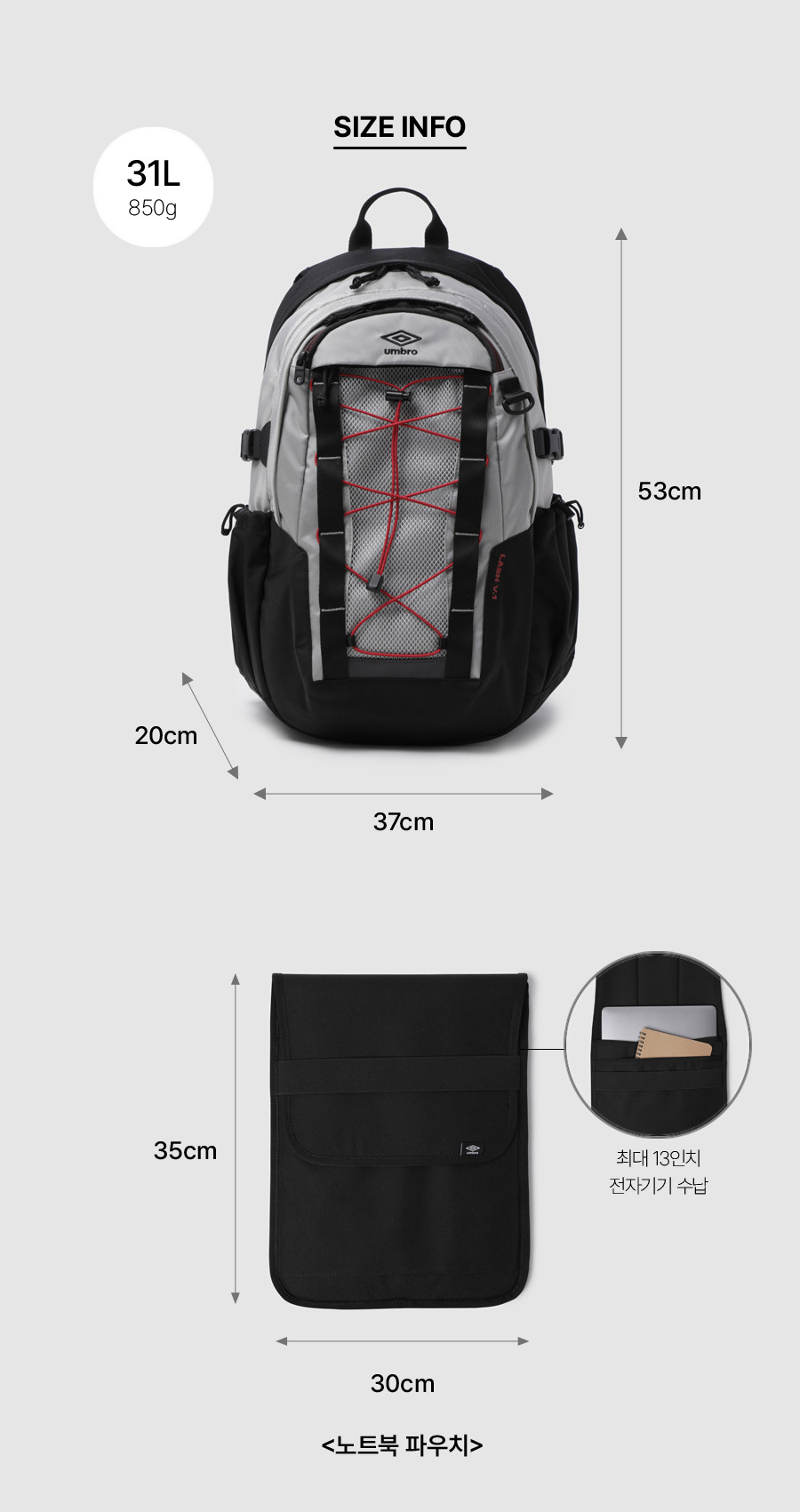 | 크기 | 실측(FR)사이즈(cm)-가로37 세로53 폭20 중량850g |
