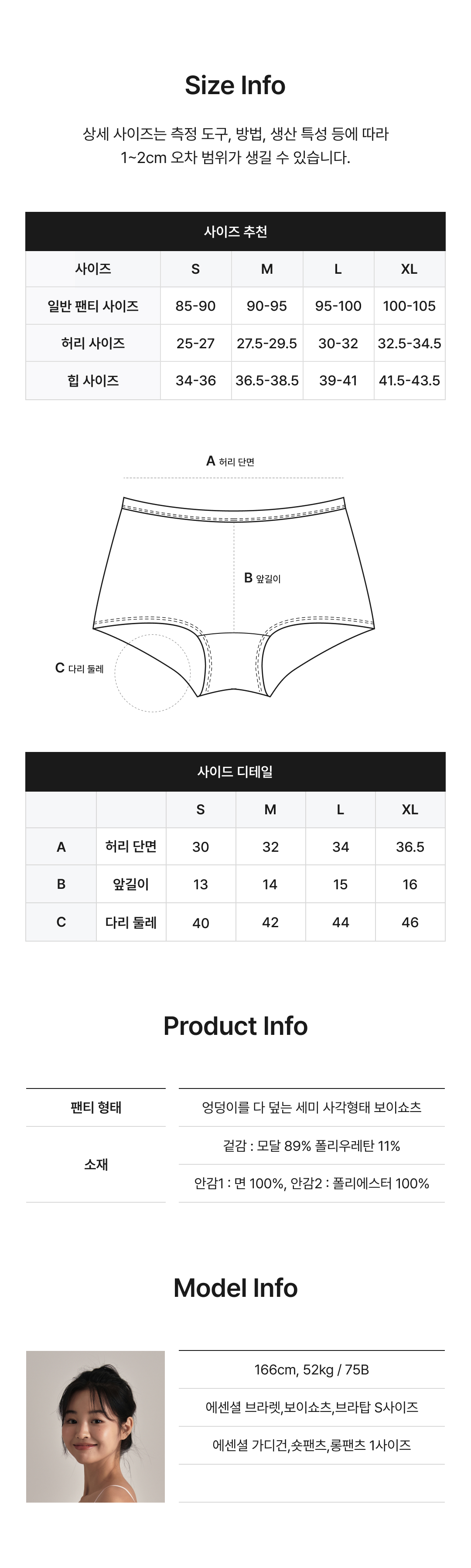 모달 심리스 안착 팬티