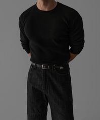 헤어리 머슬 라운드 긴팔 니트티 [블랙]