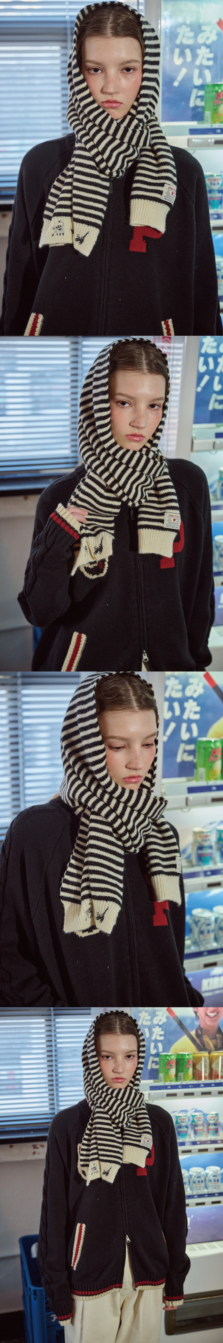 코코 스트라이프 머플러 블랙