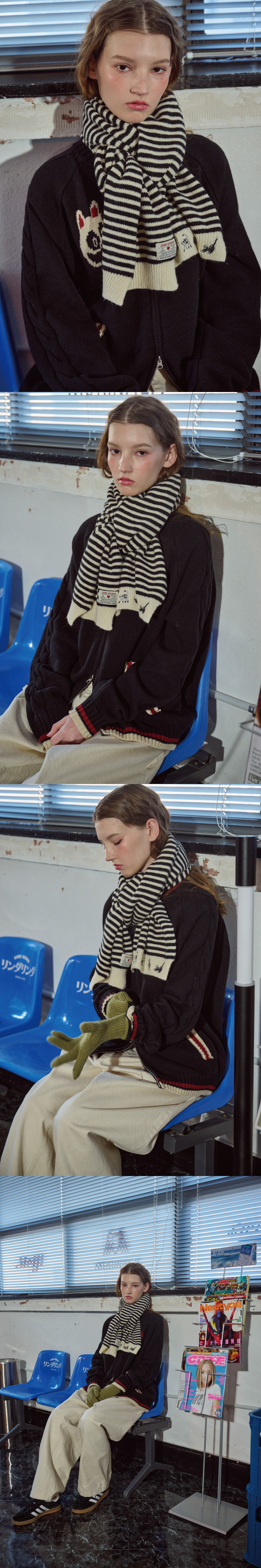 캣스티치 스트라이프 머플러 아이보리