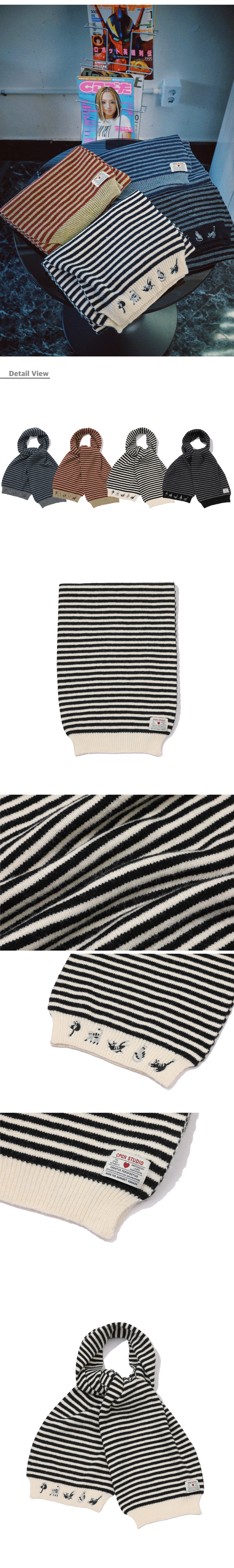 캣스티치 스트라이프 머플러 네이비