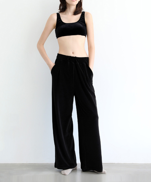 벨벳 플리츠 팬츠 [블랙]