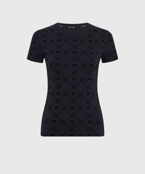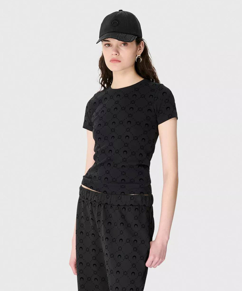 (W) 무노그램 플로크드 리브드 저지 베이비 핏 티셔츠 블랙 MOONOGRAM FLOCKED RIBBED JERSEY BABY FIT T-SHIRT BK99 BLACK