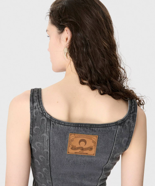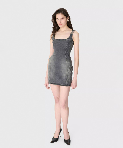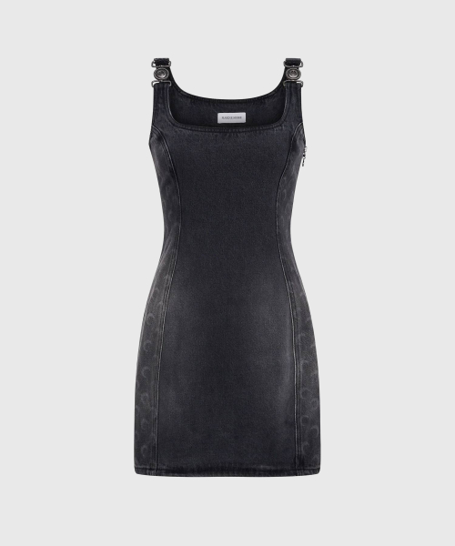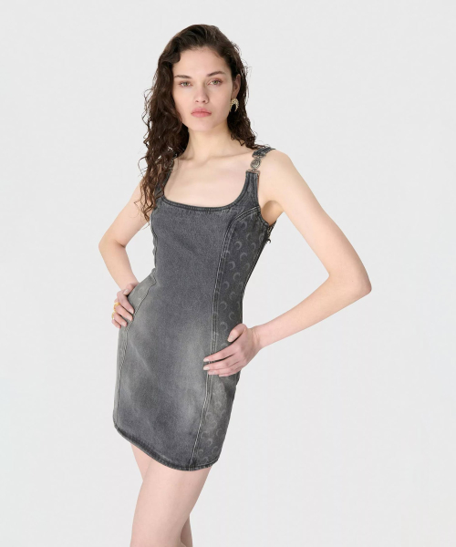 (W) 문 레이저 그레이 워시 데님 슬리브리스 미니 드레스 다크 그레이 MOON LASER GREY WASH DENIM SLEEVELESS MINI DRESS GR90 DARK G