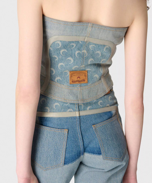 (W) 리제너레이티드 데님 뷔스티에 탑 라이트 샌드 REGENERATED DENIM BUSTIER TOP BG01 LIGHT SAND