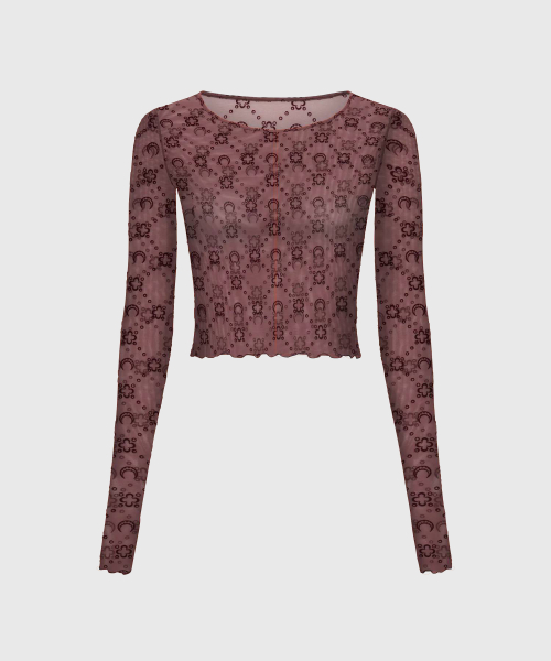 (W) 무노그램 매쉬 플록 롱슬리브 크롭드 탑 바이올렛 MOONOGRAM MESH FLOCK LS CROPPED TOP PU70 AUBERGINE