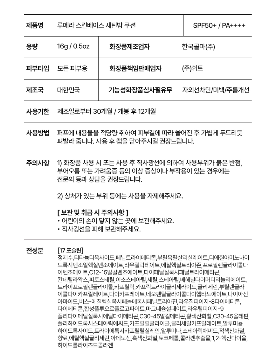 루메라 스킨베이스 새틴밤 쿠션 (4color)