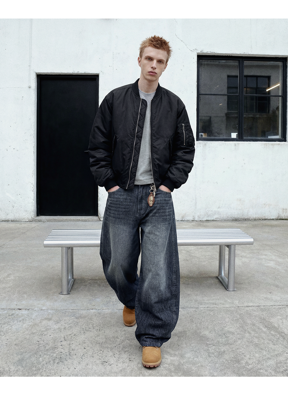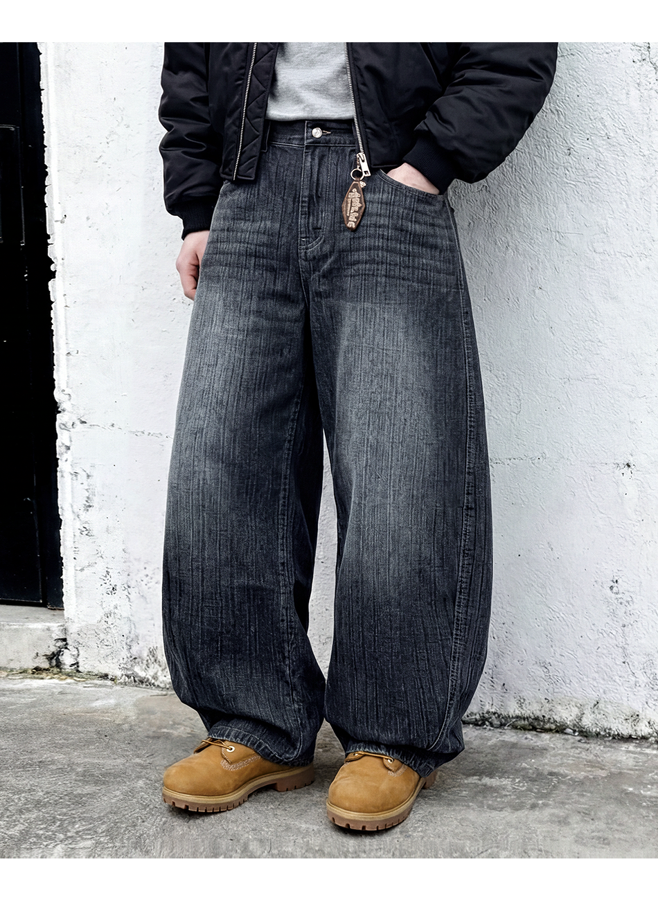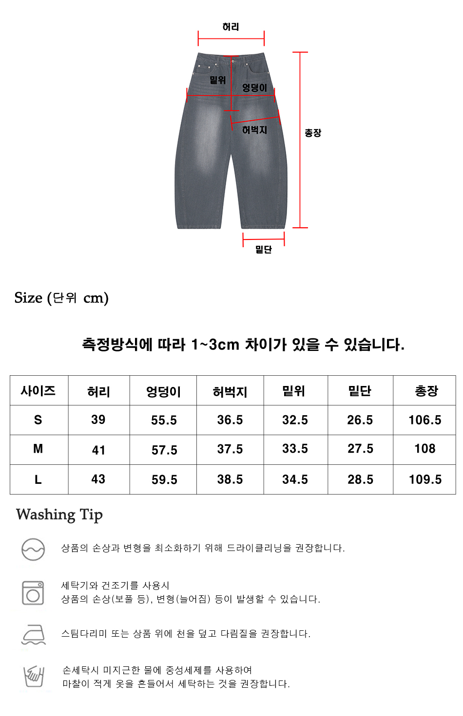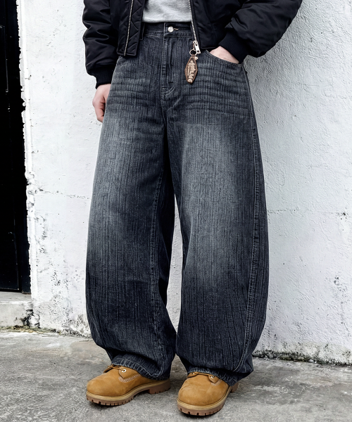 87-STAN047 벌룬핏 워싱 와이드 데님팬츠 빈티지옐로우블랙