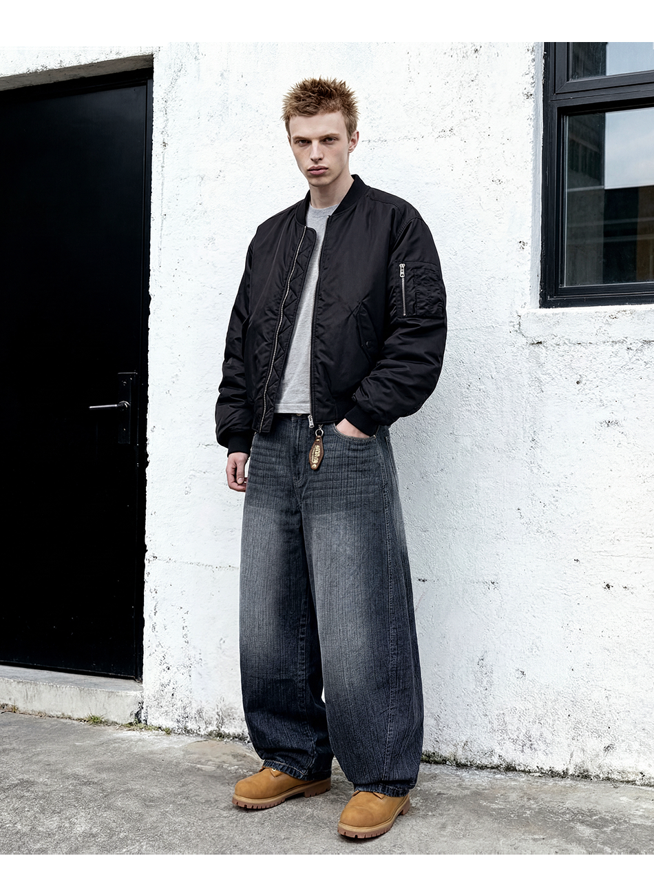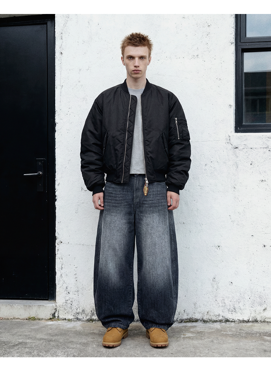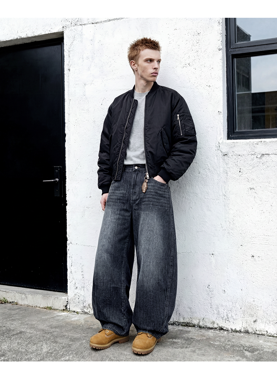 87-STAN047 벌룬핏 워싱 와이드 데님팬츠 빈티지옐로우블랙