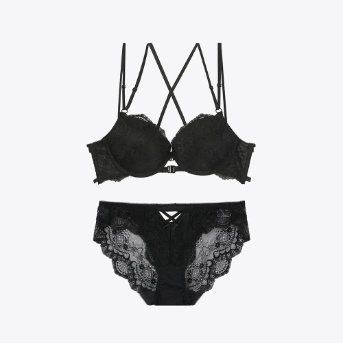 핫썸머 스트링 프론트 훅 브라 / 레이스팬티 세트_블랙