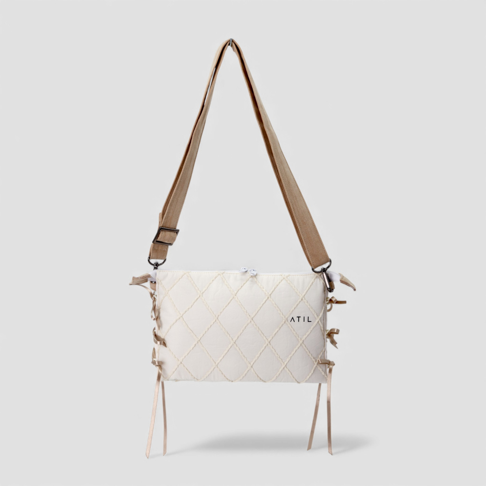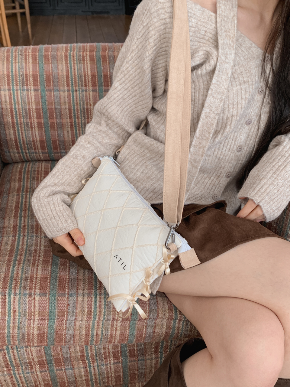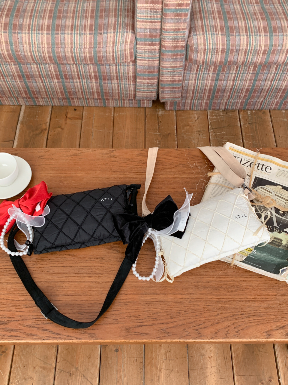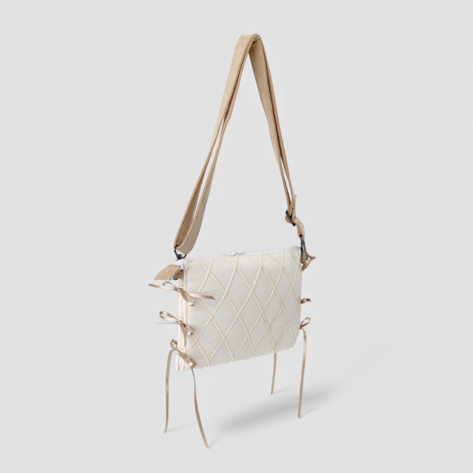 다이아 퀼팅 패딩 리본 패스포트 트래블 숄더 & 크로스백 _ [아이보리]