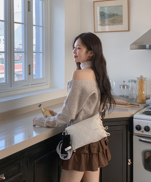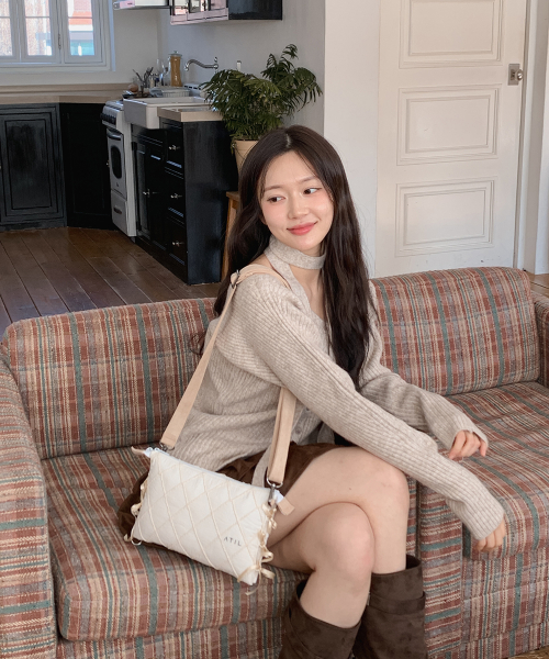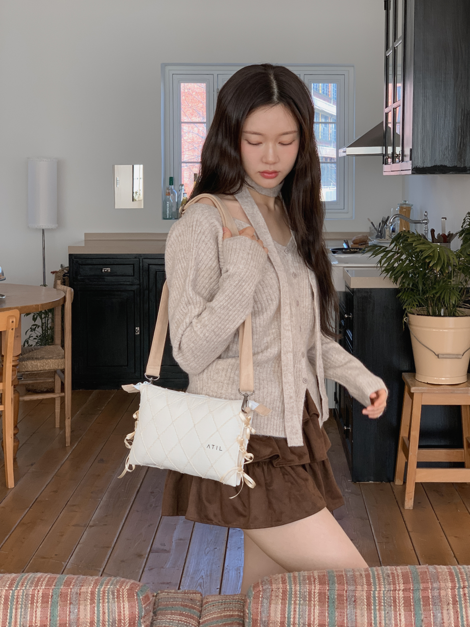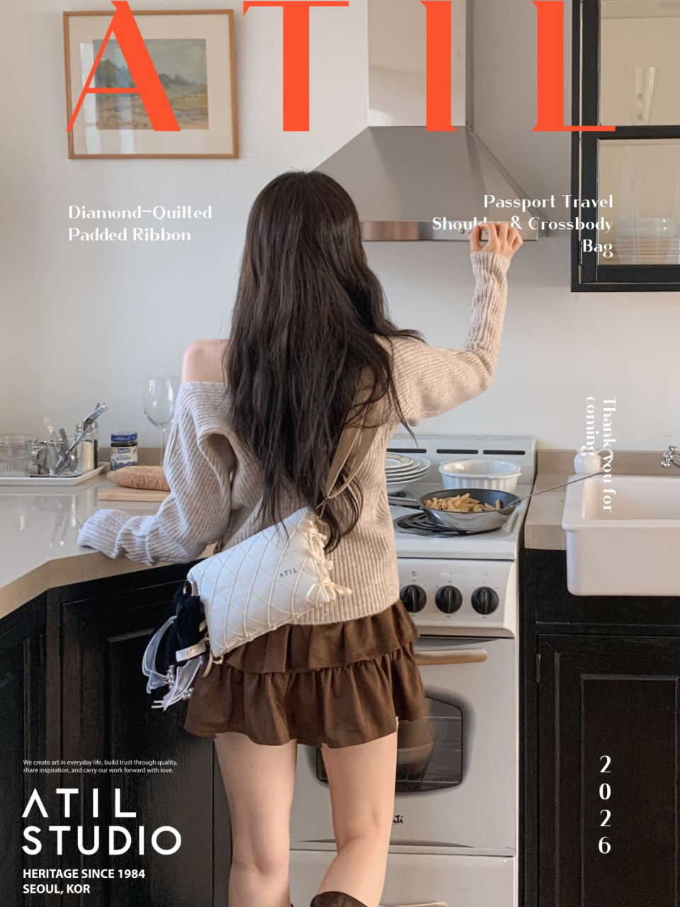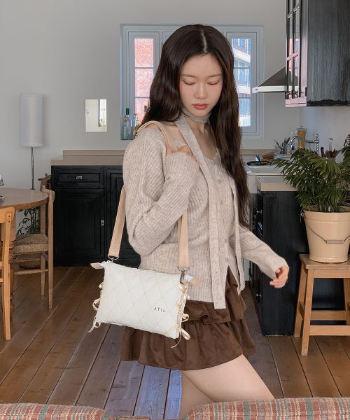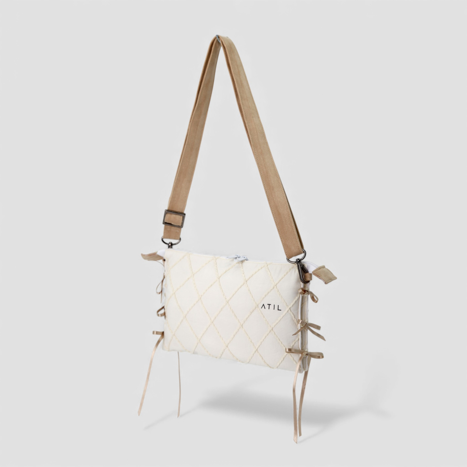 다이아 퀼팅 패딩 리본 패스포트 트래블 숄더 & 크로스백 _ [아이보리]