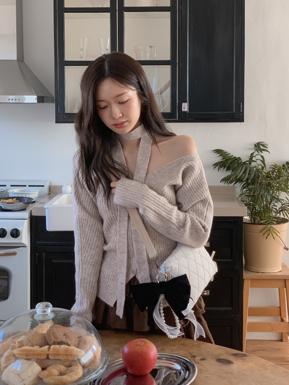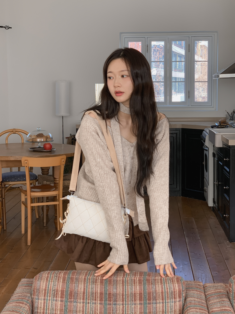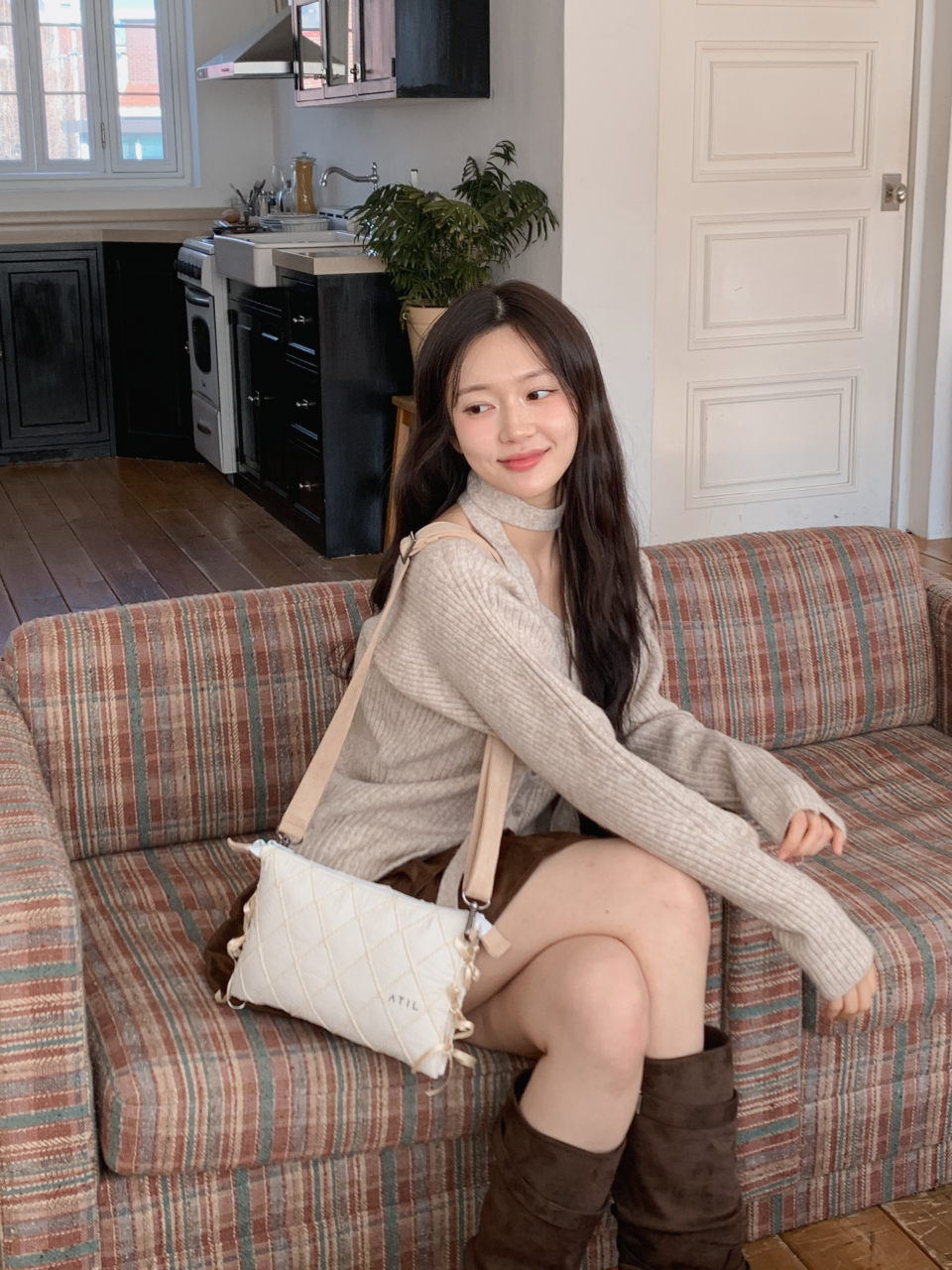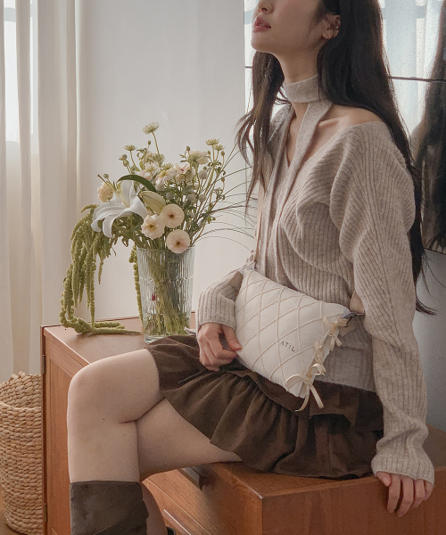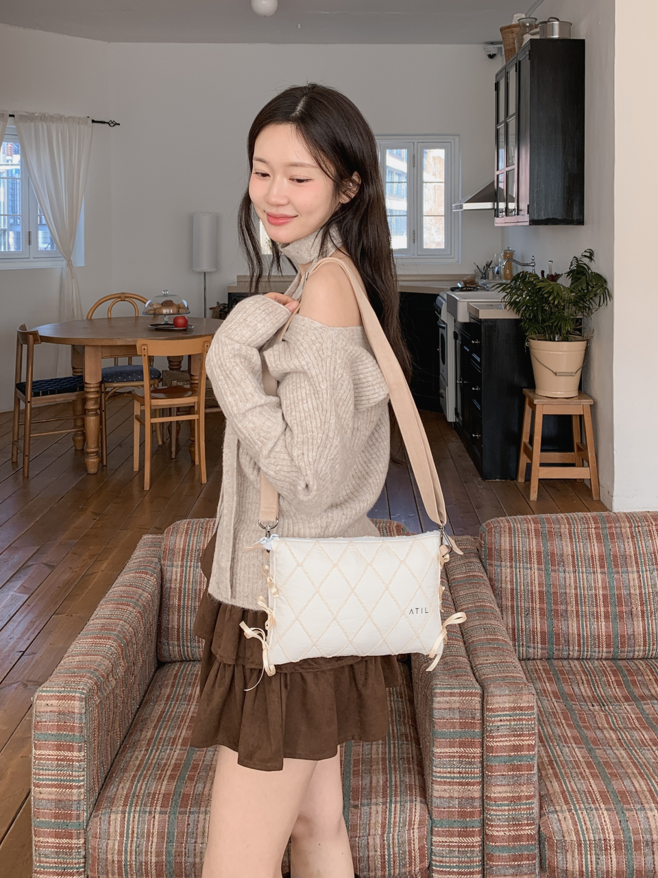 다이아 퀼팅 패딩 리본 패스포트 트래블 숄더 & 크로스백 _ [아이보리]