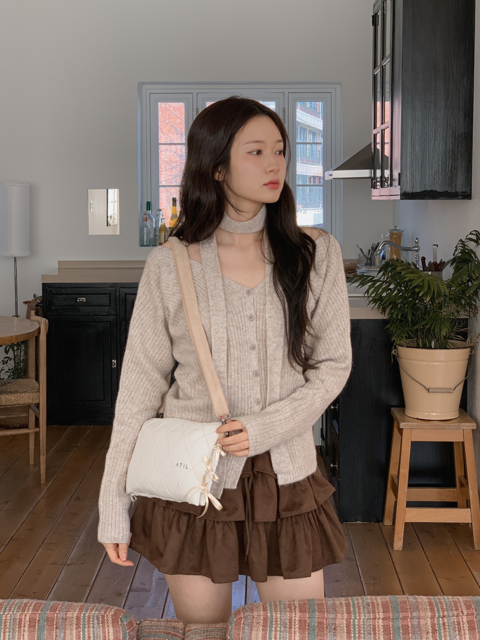 셰리 울 리본 크로스 앤 숄더 클러치 백 _ [그린]