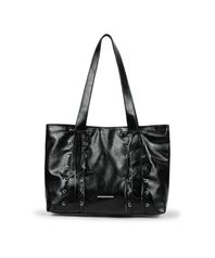 Eyelet Ribbon Leather Shoulder Bag (Black)