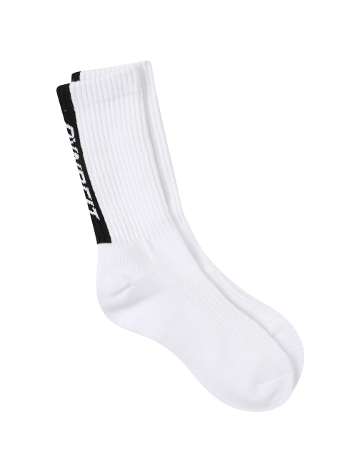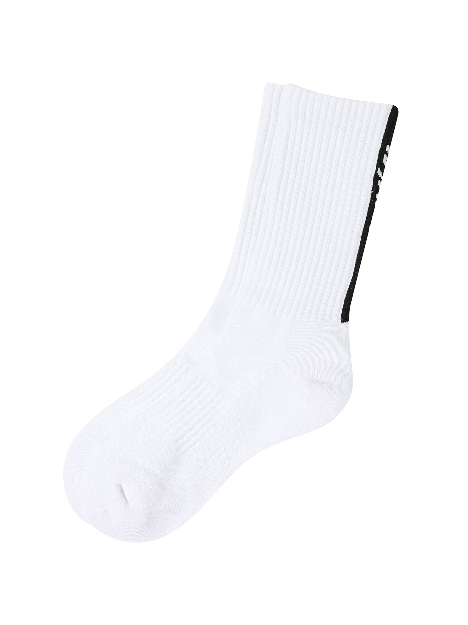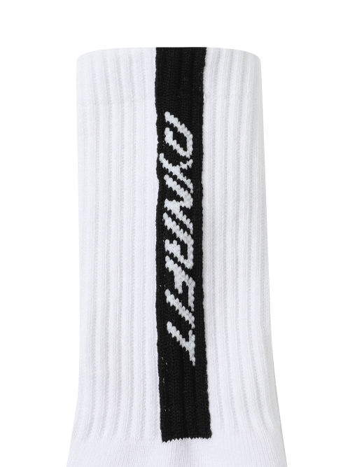 [스포츠와 일상에서 착용가능한 세로워딩 포인트의 크루삭스]- 양말 뒷면에 로고 포인트를 적용한 양말로 발등의 메쉬 조직으로 통기성이 우수하며 발바닥에 파일을 적용하여 쿠셔닝이 좋음.