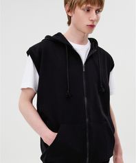 베이직 스탠다드 특양면 민소매 후드집업 블랙