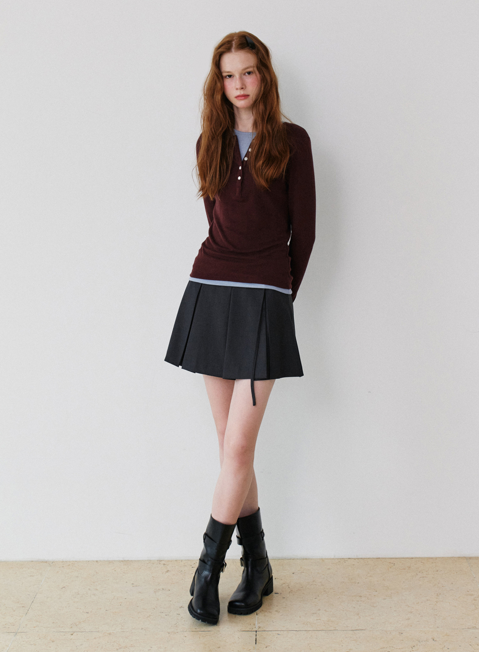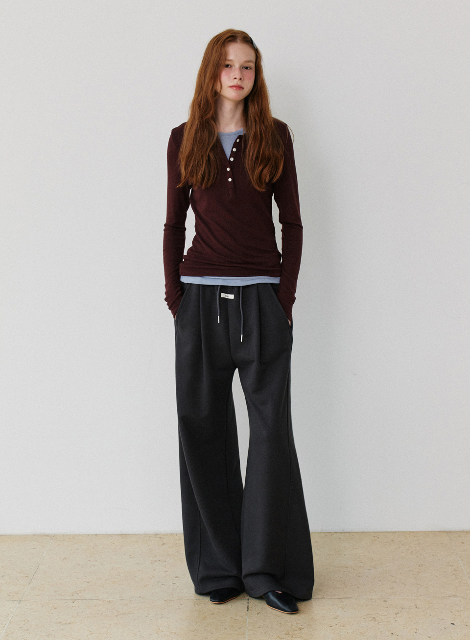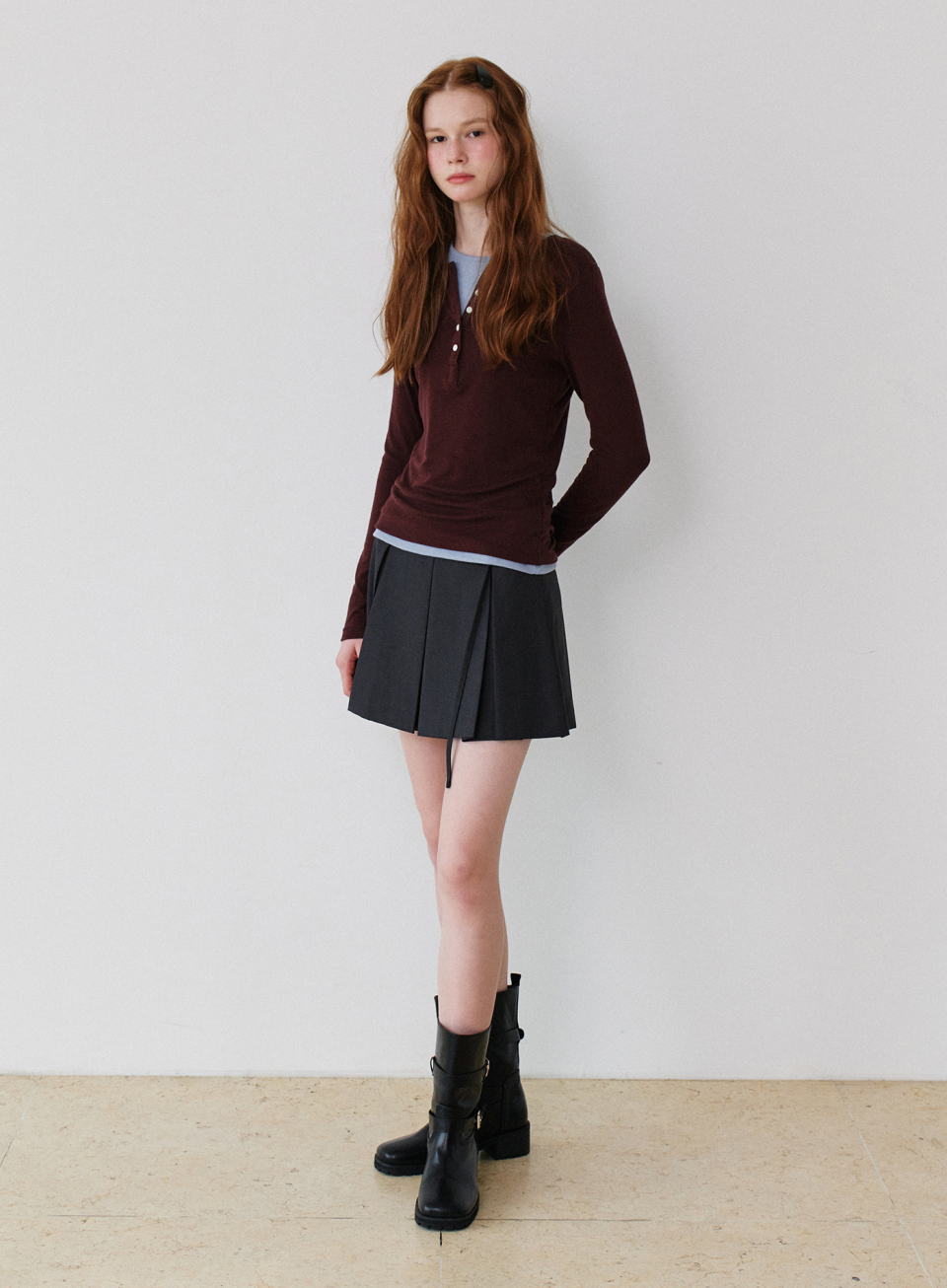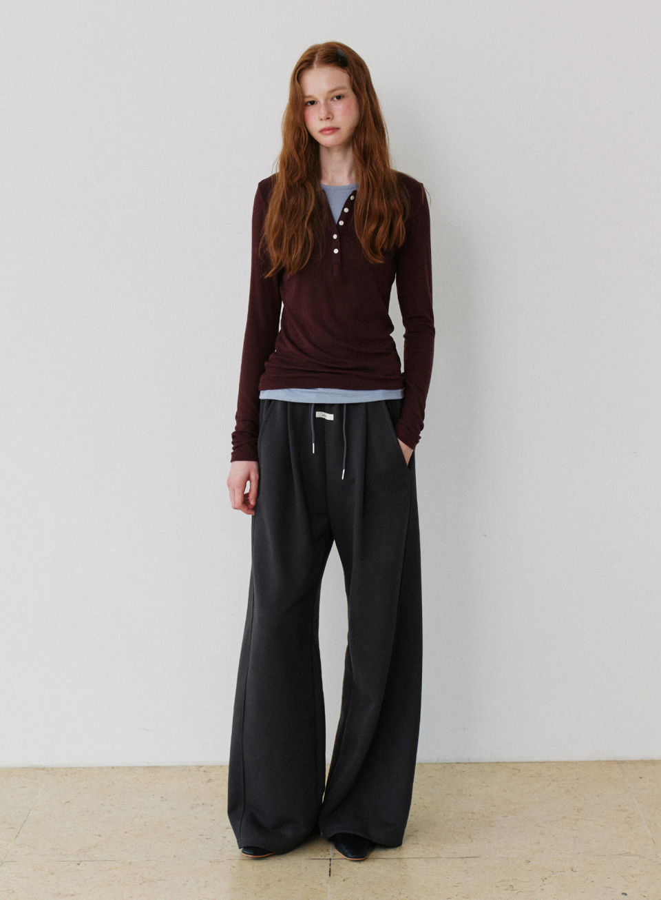 - 울혼방 원단으로 은은한 텍스처의 슬림핏 긴팔 티셔츠