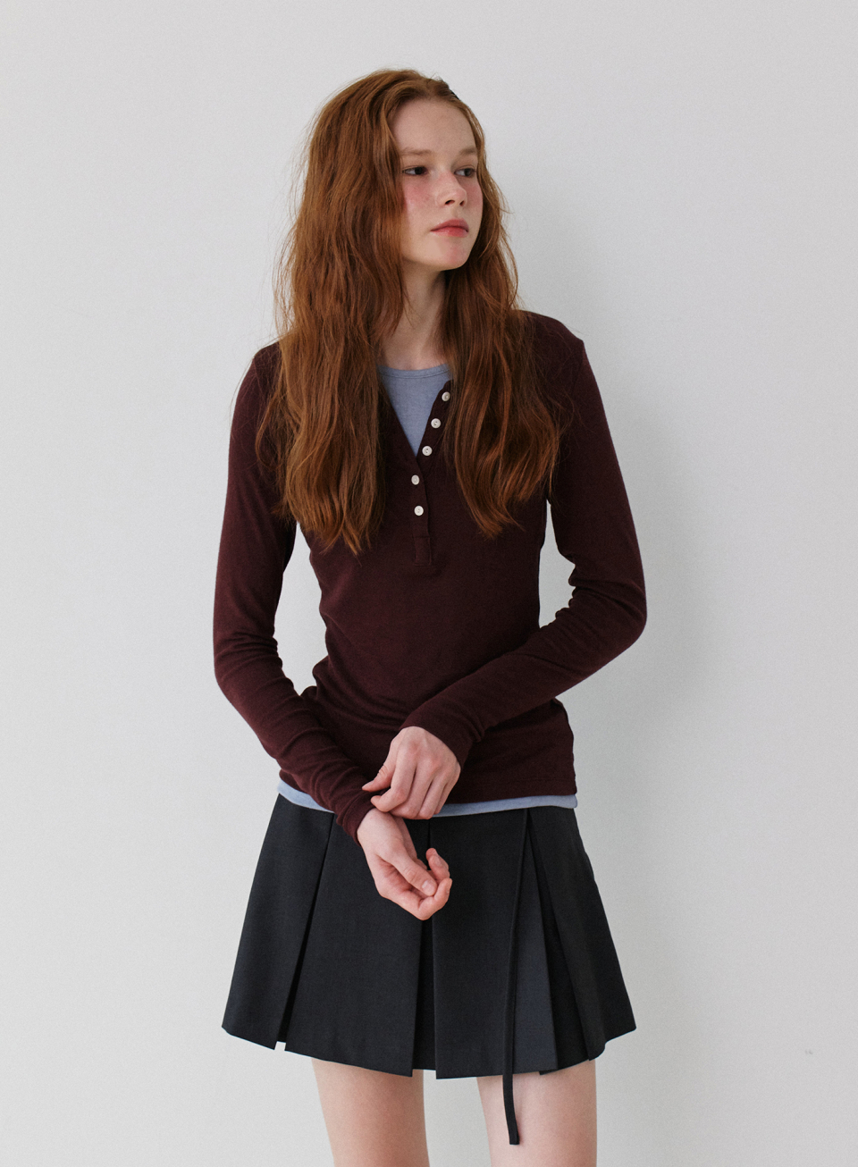 Henley Neck Layered T-shirt