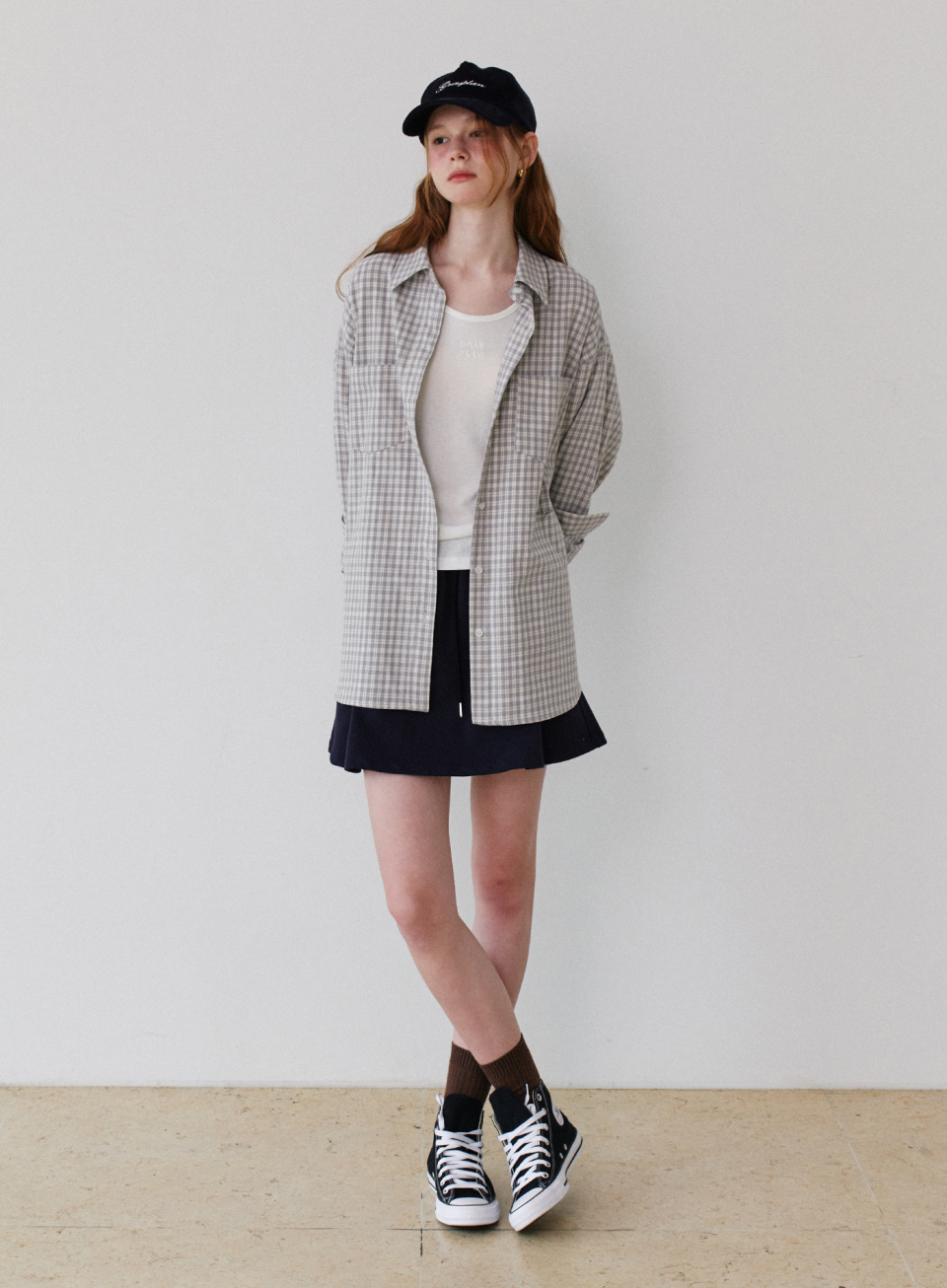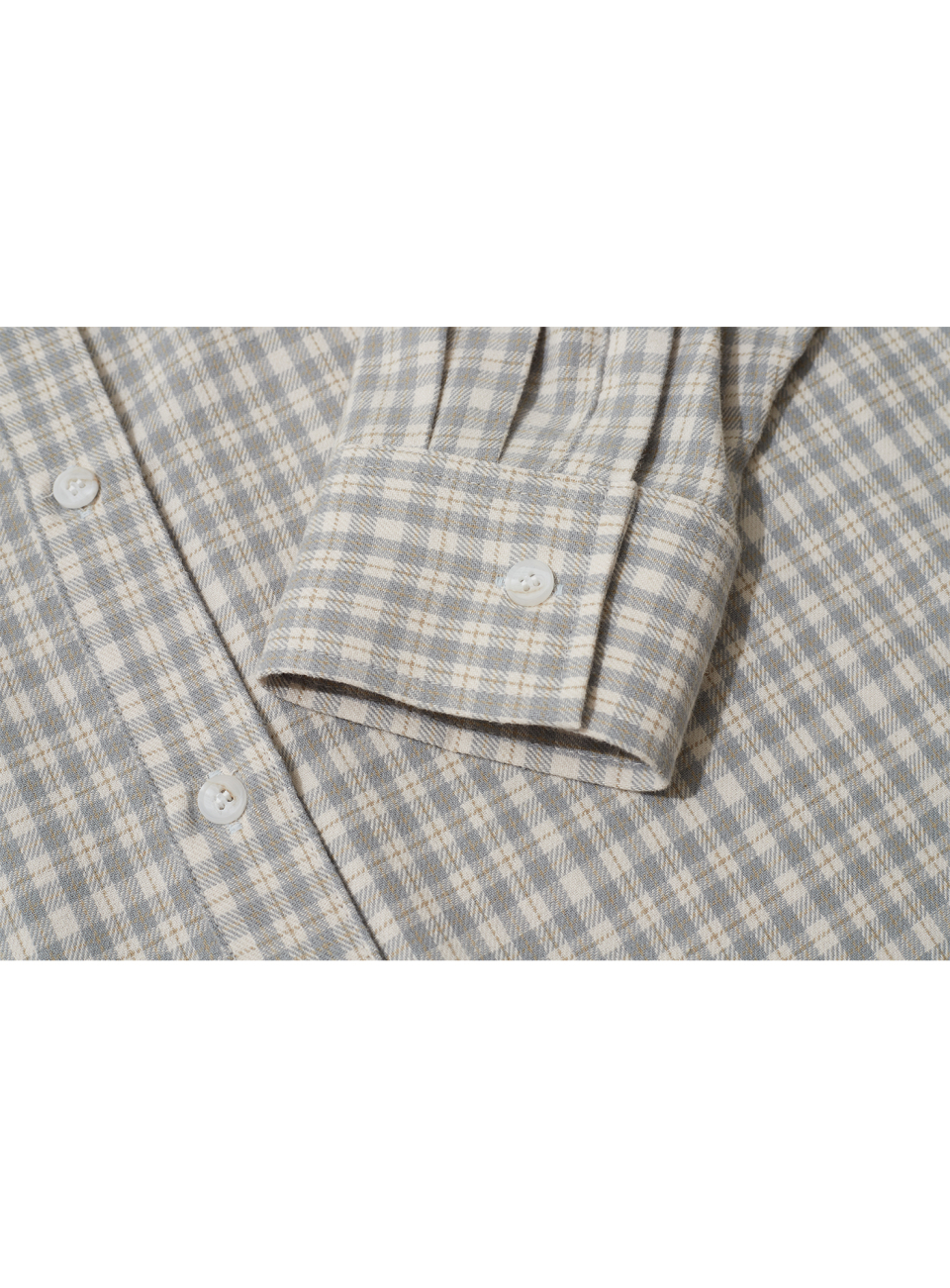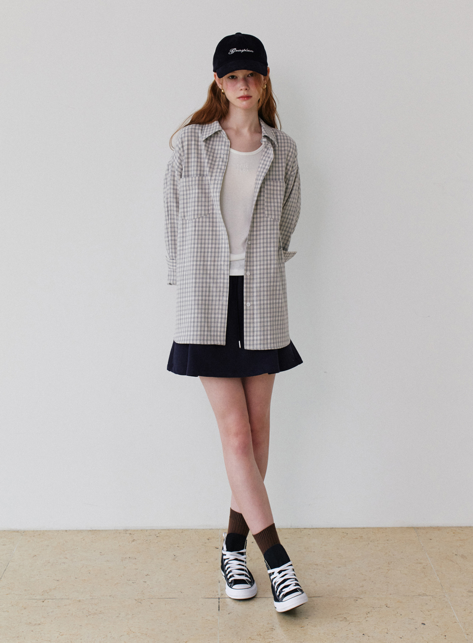 - 자잔한 체크패턴의 탄탄한 소재감이 돋보이는 오버핏 롱 체크셔츠