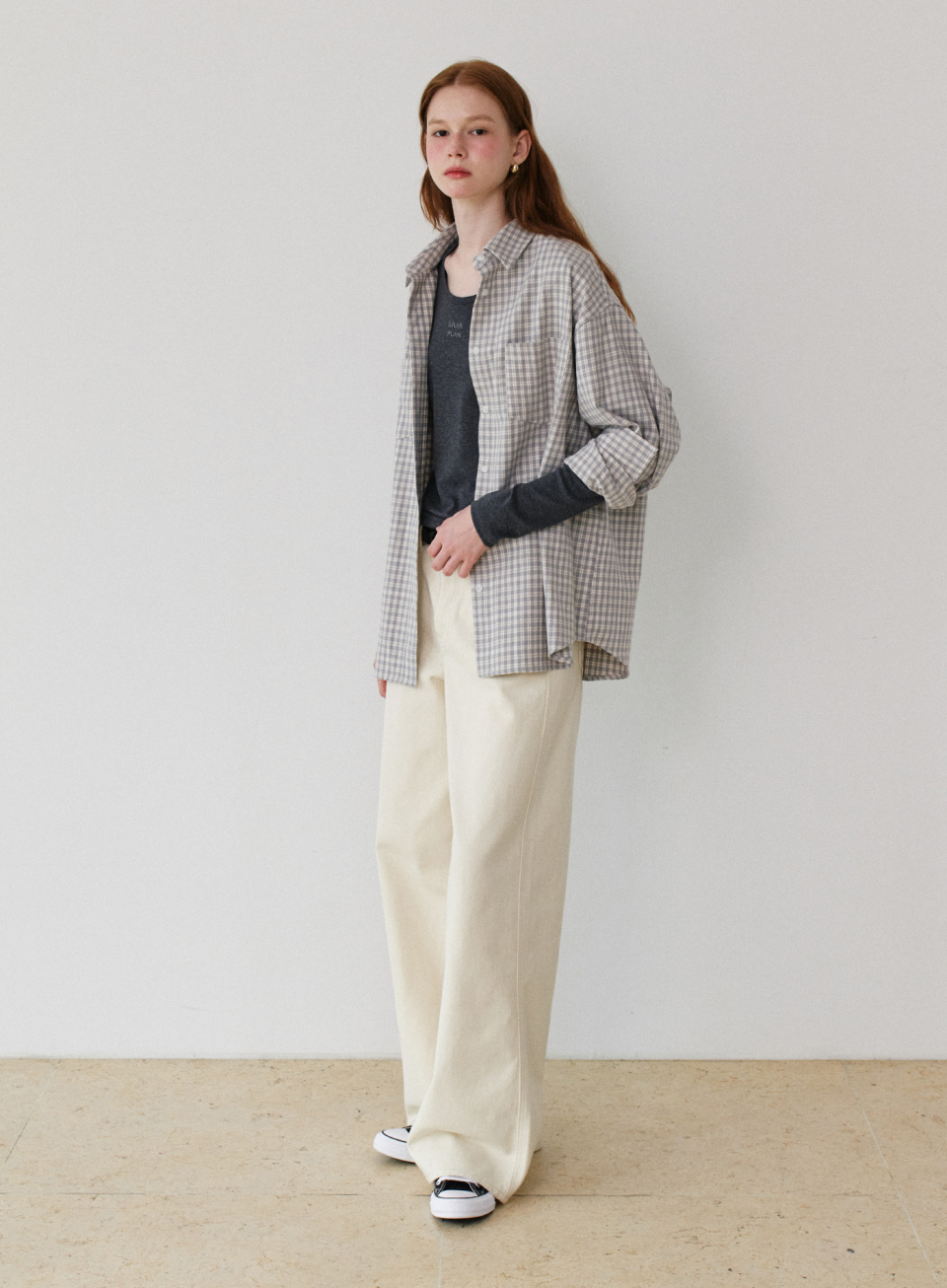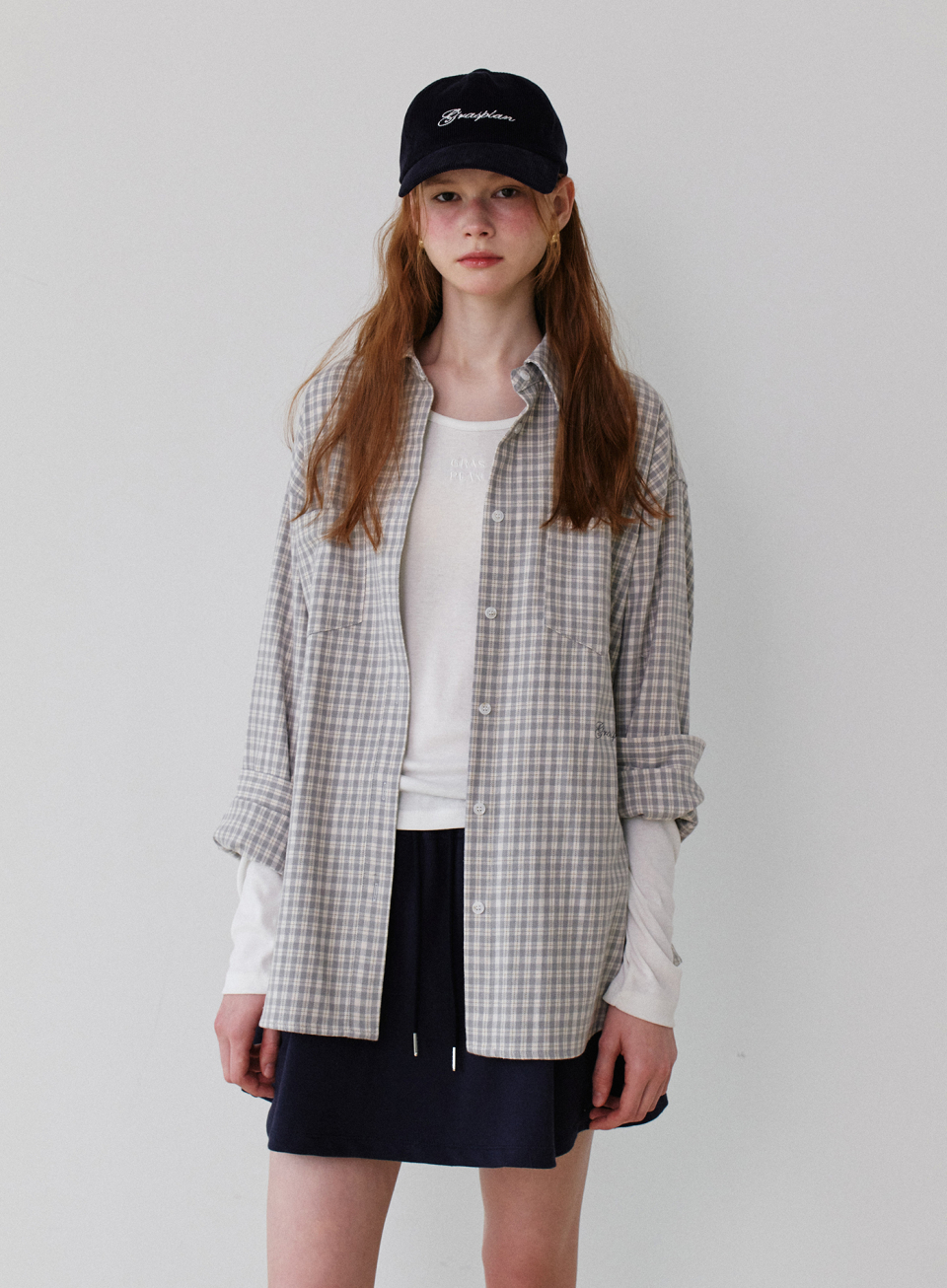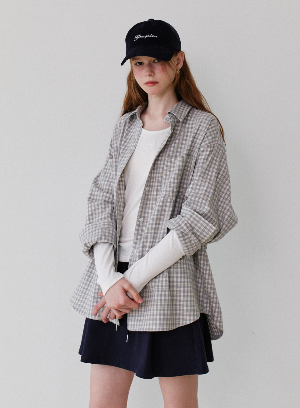 - 자잔한 체크패턴의 탄탄한 소재감이 돋보이는 오버핏 롱 체크셔츠