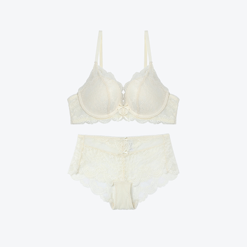 러블리 컴포트 노와이어 브라 레이스팬티 세트_크림