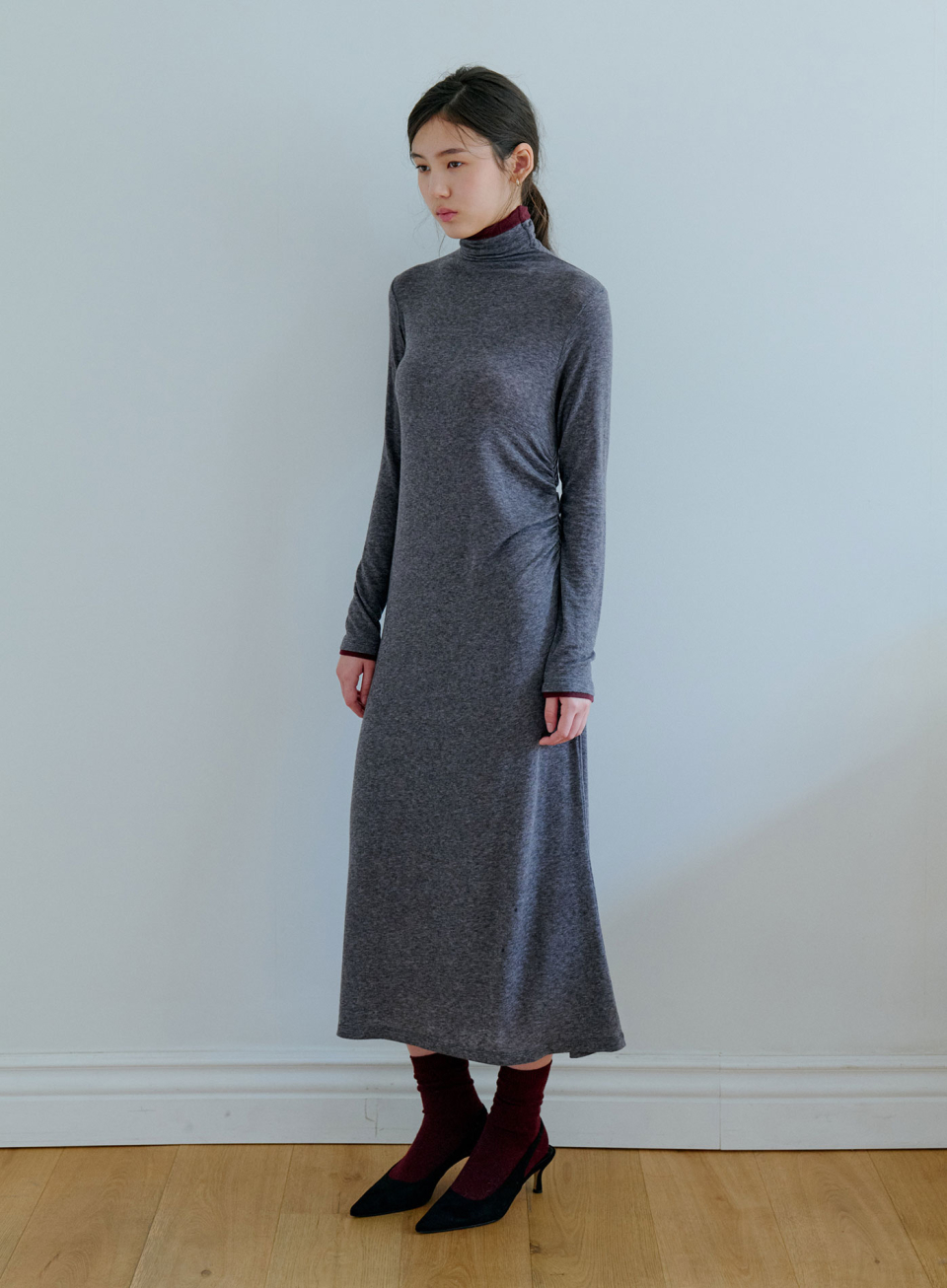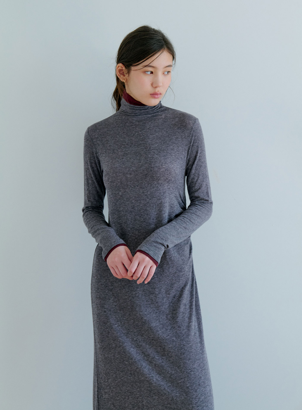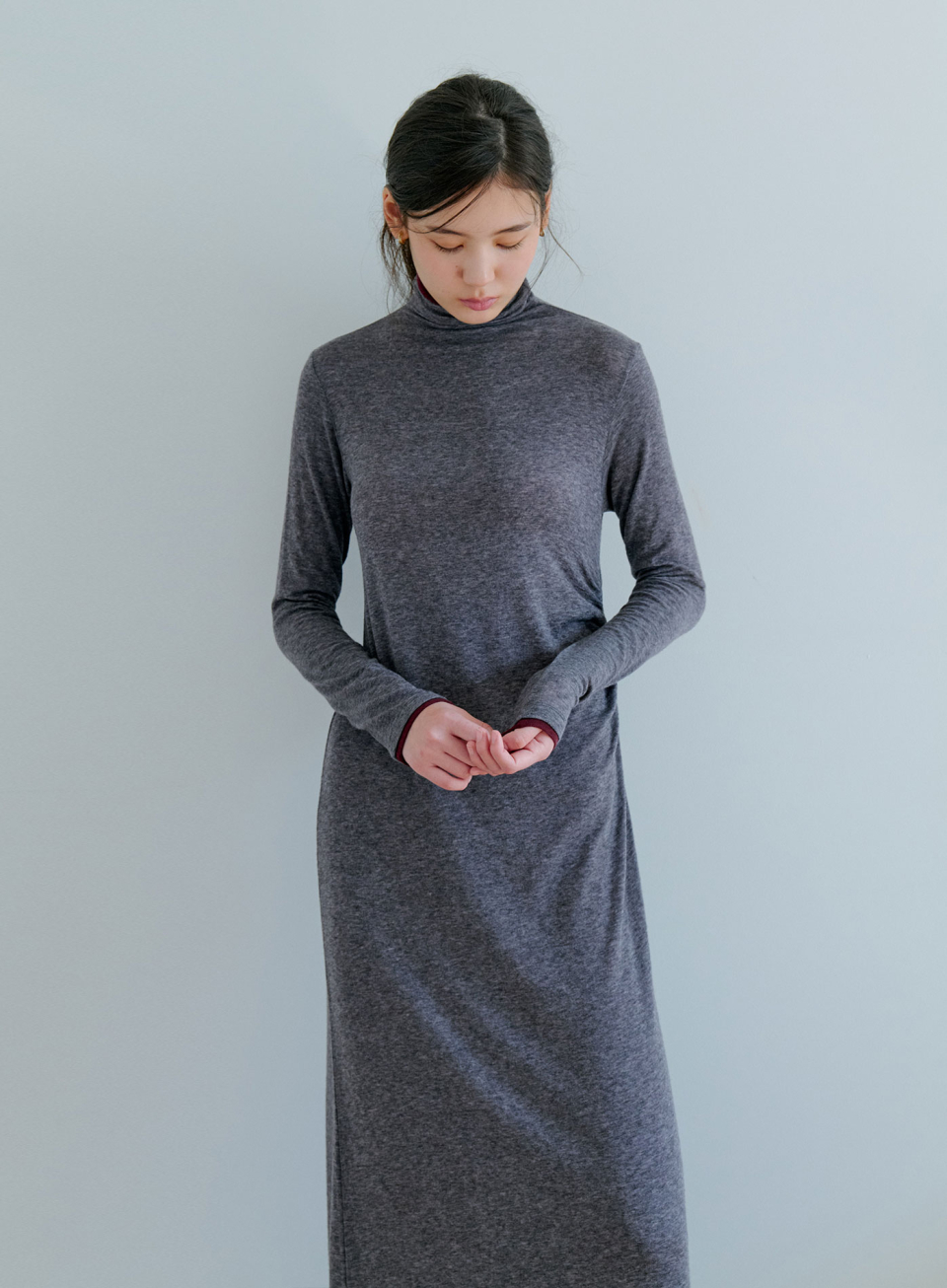 - 텐셀 울 혼방소재로 제작되어 부드럽고 유연한 촉감의 롱 슬리브리스 원피스