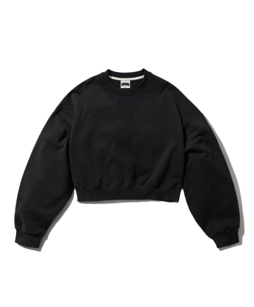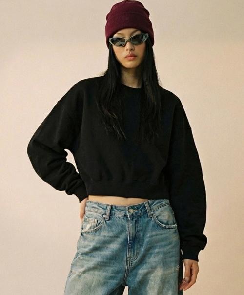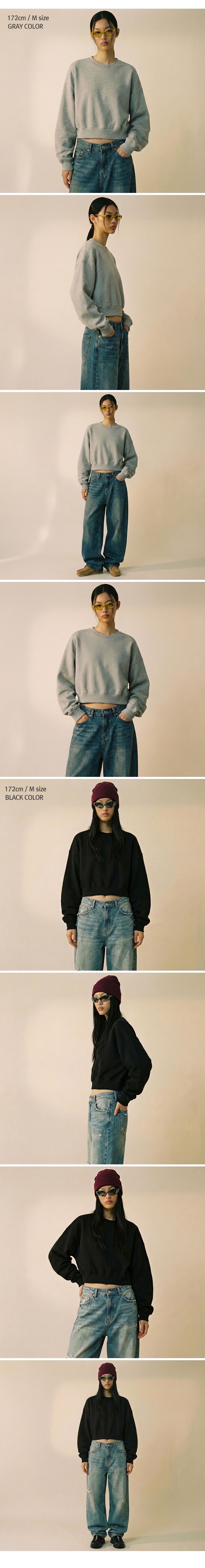 베이직 오버사이즈 볼륨 크롭 스웻셔츠 블랙