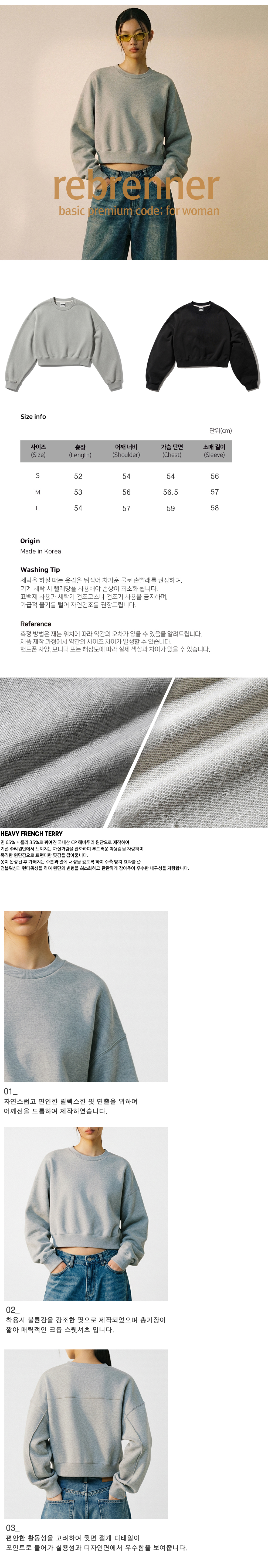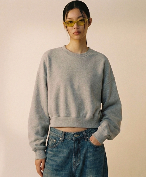 베이직 오버사이즈 볼륨 크롭 스웻셔츠 그레이
