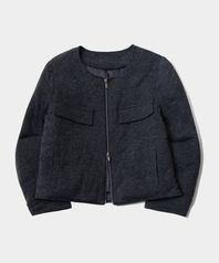 미니멀 윈터 라운드넥 클래식 포켓 크롭 트위드 자켓 [차콜]