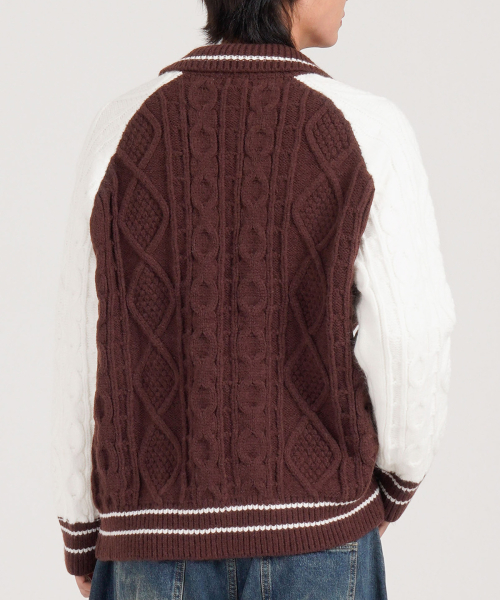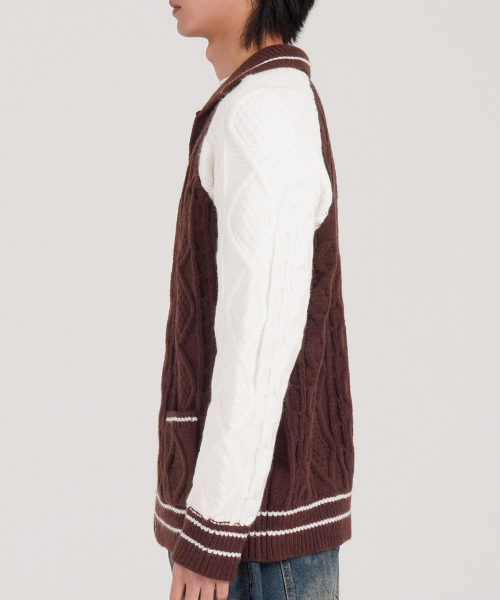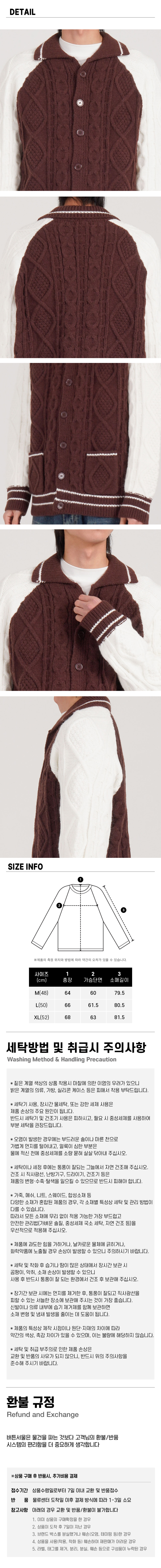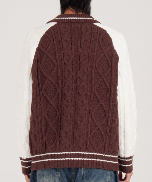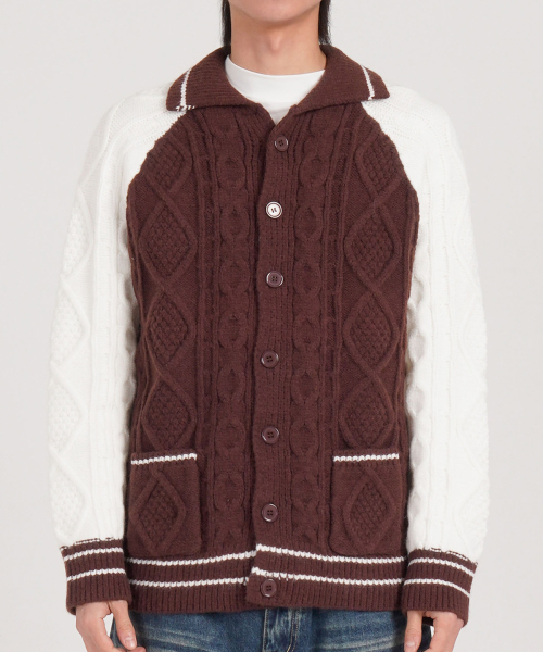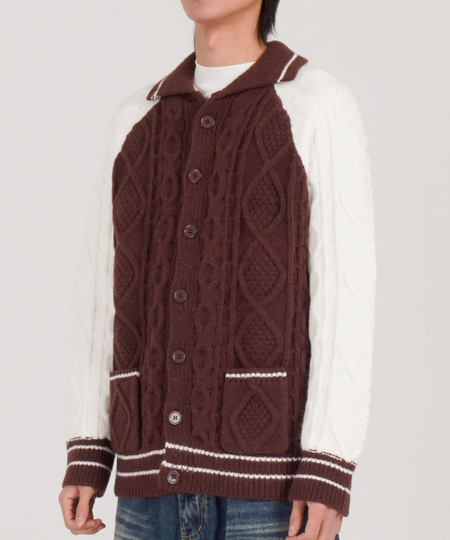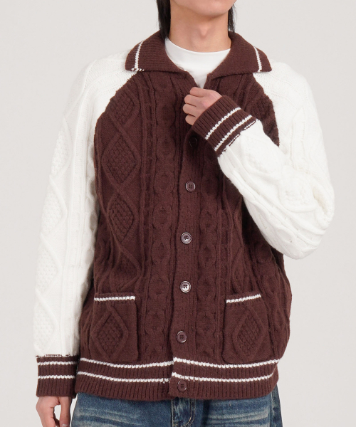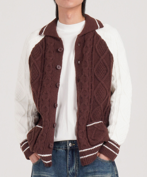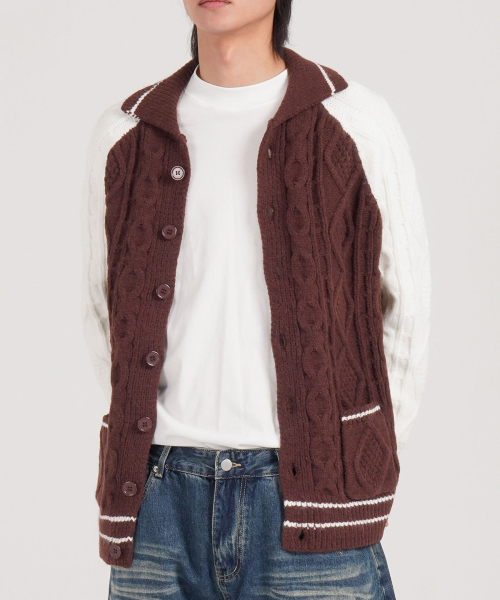 케이블 니트 나그랑 카라 가디건 (브라운)