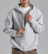 미니멀 후드 집업 니트 가디건 (라이트 그레이)
