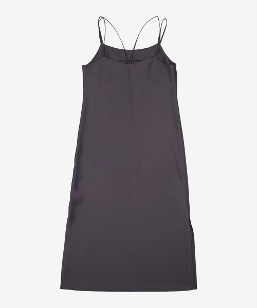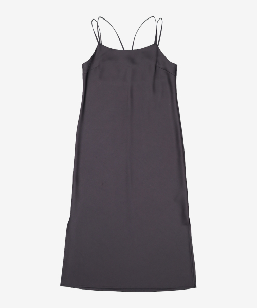 새틴 셔링 끈 원피스 브라운 (114971CY1D)