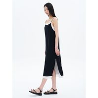 배색 슬릿 슬리브리스 드레스 블랙